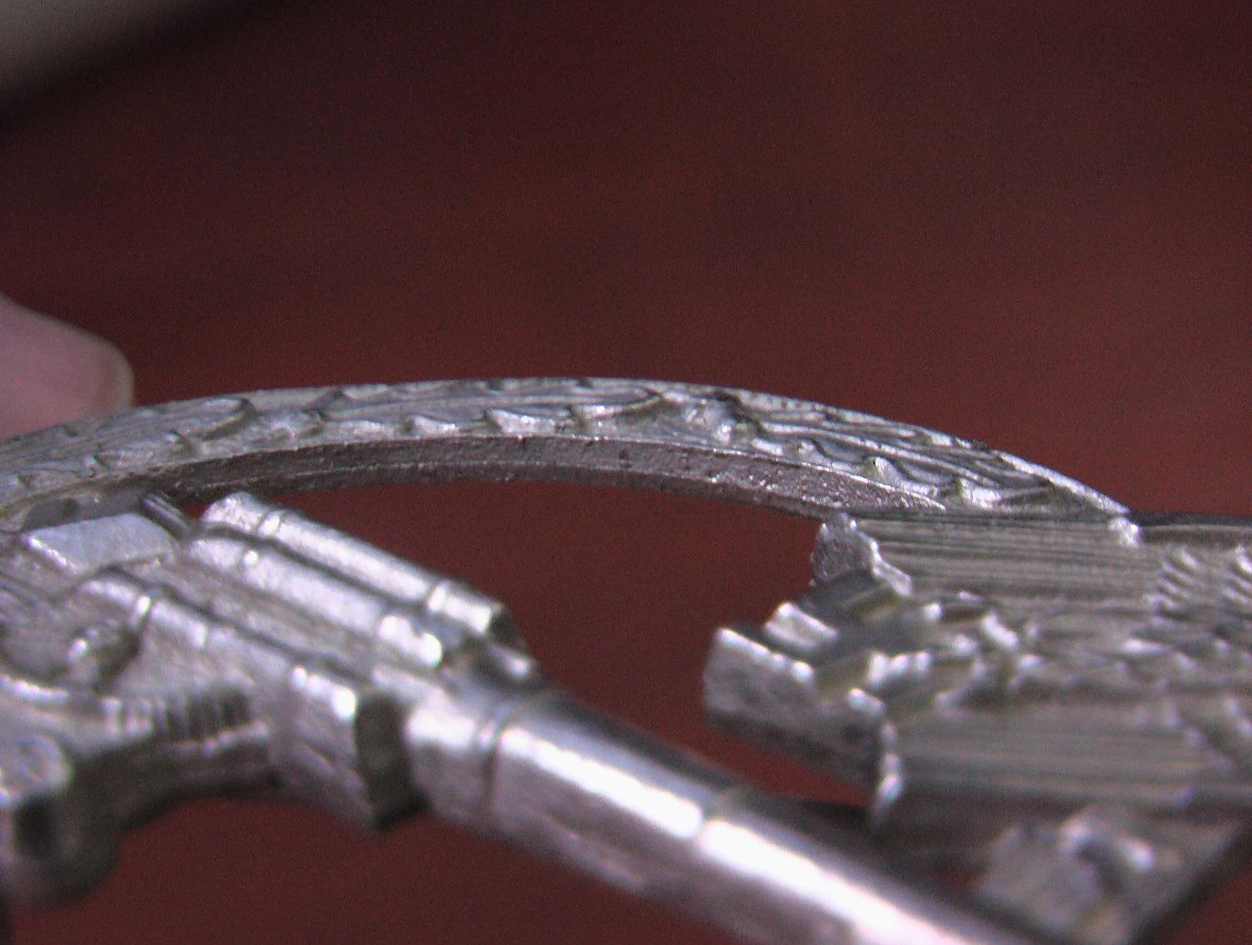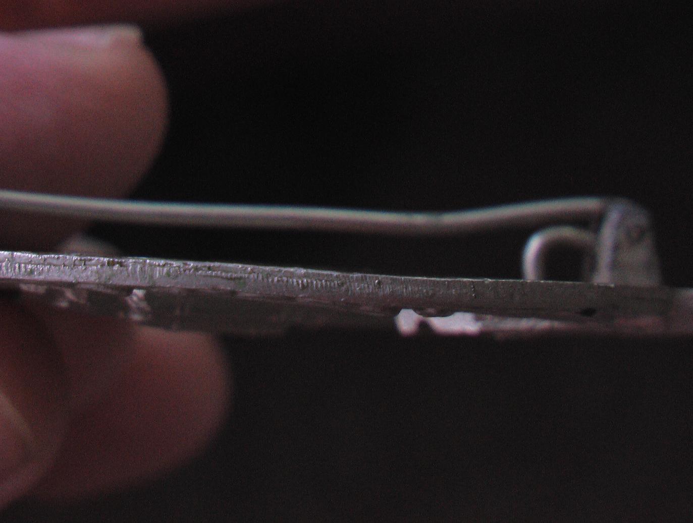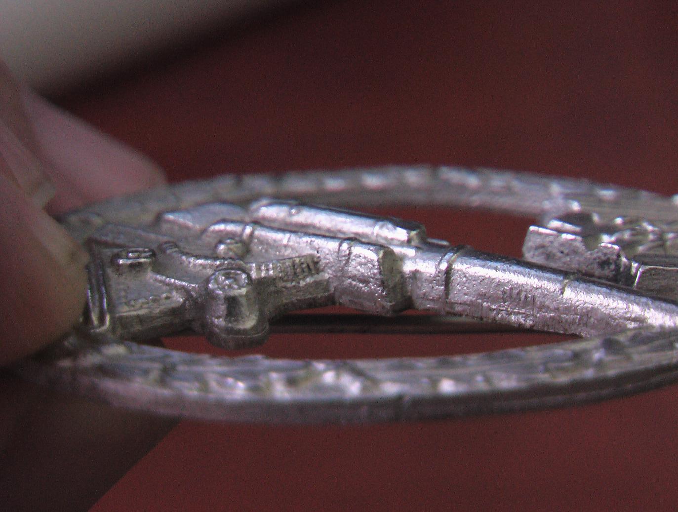 Ответ: Зенитчик, подлинность, цена? Серж1 Не расстраивайтесь,но ваш знак копия.. Это не оригинал..Знак действительно литой,но в близком увеличении заметно некачественное литье, материал явно не цинк и не томпак, а именно из них делались армейские зенитчики.. Края не обработаны..подтеки.. И учитывая,что знак довольно широко подделывался (даже во времена вашего дяди) и одним (не единственным) из признаков подделки является S-образная петля,где он крепится к основанию.. которая у Вас имеется.. Про крюк я уже писал.. Он кстати сделан вместе со знаком,изначально, и его основание не перепаивалось , ибо очевидно, что материал основания крюка и знака один и тот же.. Можно с увереностью заключить, что у Вас НЕ ОРИГИНАЛ.. ПС S-образная петля присутствует на многих подделках,как легко выполнимая и дешевая в производстве деталь,хотя на других знаках она может быть и на оригиналах..
