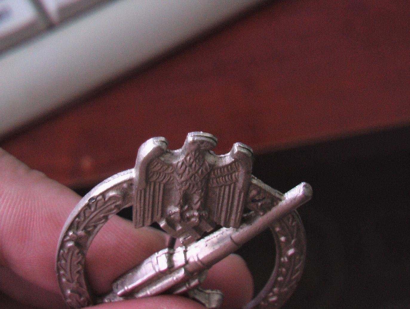 Друзи, есть вот такой вот зенитчик. На мой взгляд вроде оригинал. Иголка оригинал? ну с крюком понятно... примерную стоимость в таком состоянии? есть трещина на фото видно. Спасибо за помощь