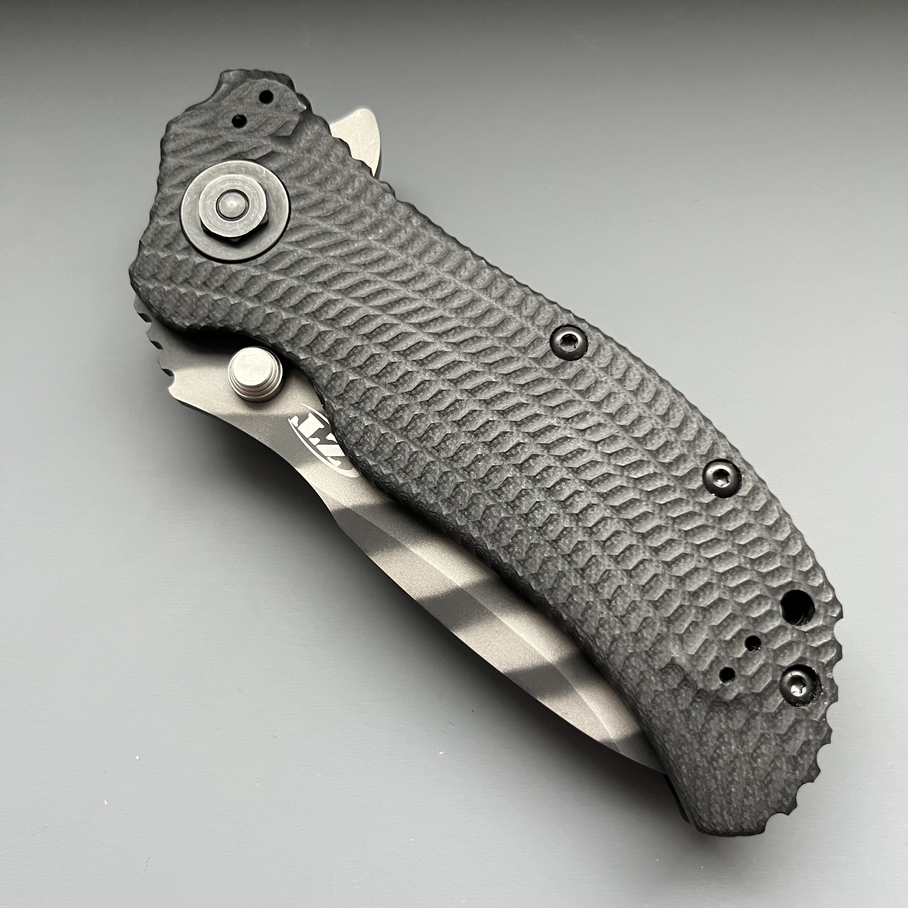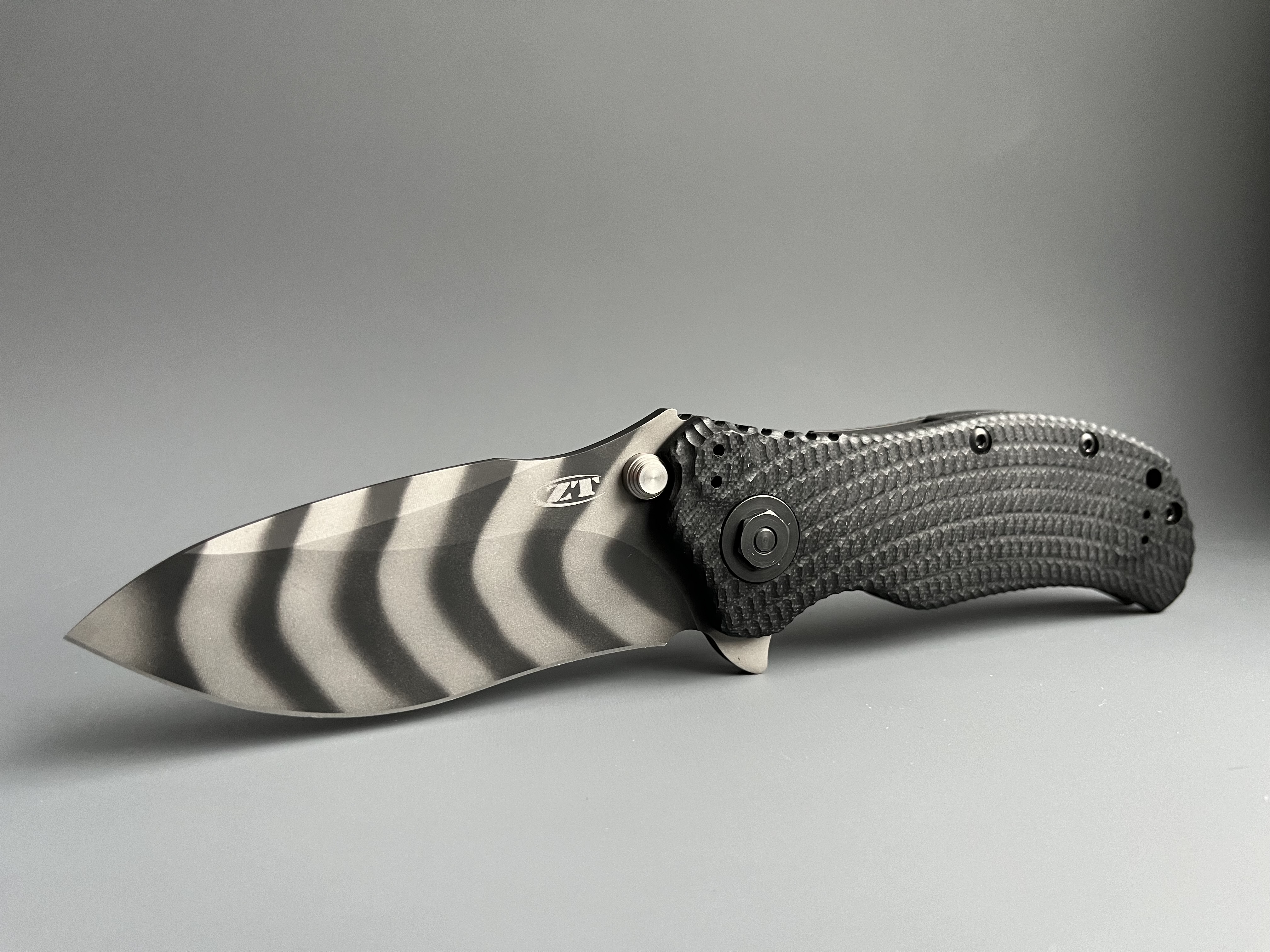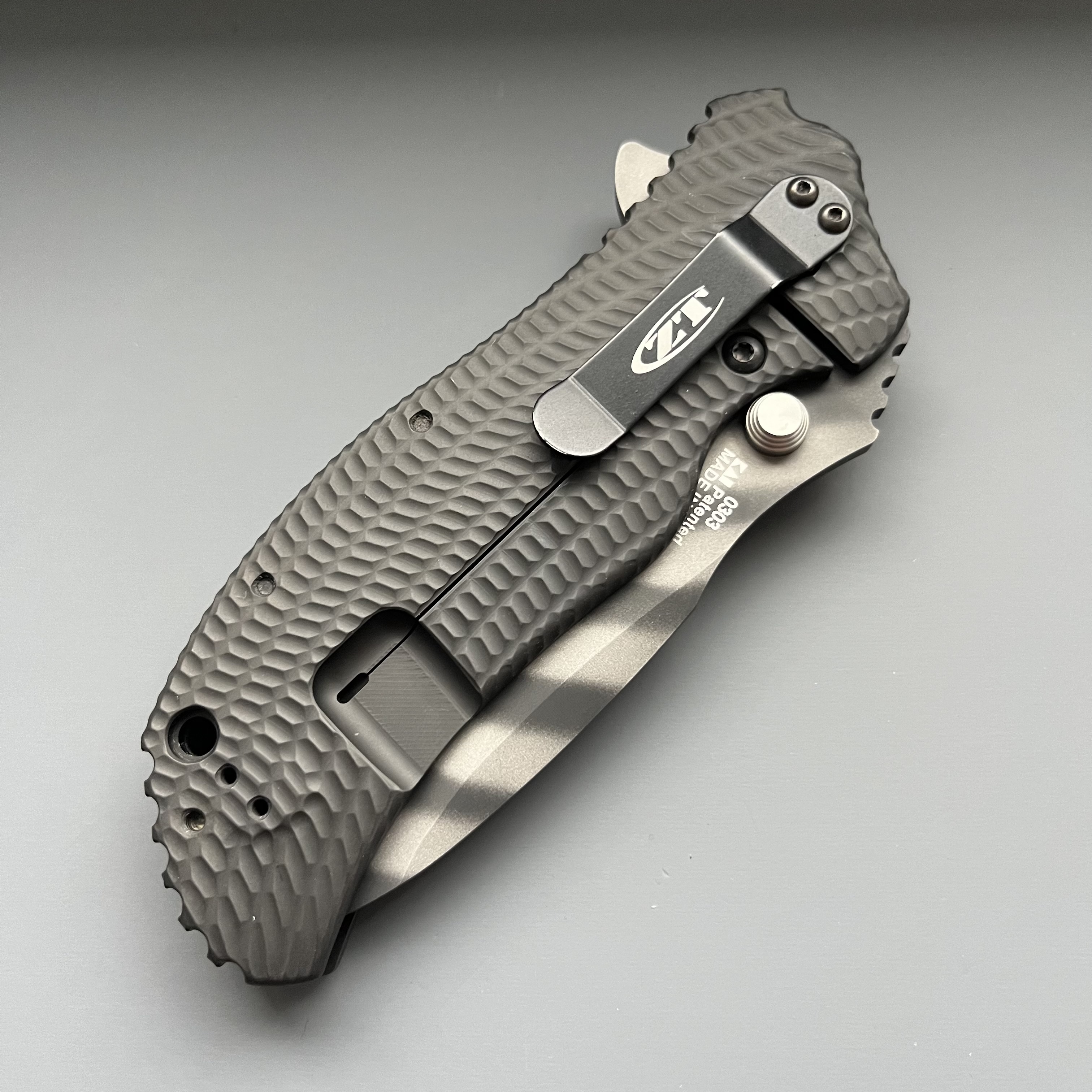 Вітаю спільноту! В продажу легендарний Zero Tolerance 0303 (ZT 0303) Дизайн від метрів - Кена Оніона та Міка Страйдера. Великий та потужний. Великі шайби, товстий кінчик, геометрія клинка та руківʼя - цей ніж створений для абʼюзу. - Загальна довжина: 219мм - Довжина клинка: 95 мм - Товщина в обусі: 4 мм - Сталь на клинку: CPM S30V - Фініш клинка: Blackwash/tiger stripes - Руківʼя: Титан та G10 - Замок: Frame lock - Вага: 243 г - Виготовлено в США - Версія із сухарем! Ніж в стані близькому до нового, має заводський грінд, є мікро потертості на кліпсі та dlc. Відео Ціна ⭐️15900₴⭐️
