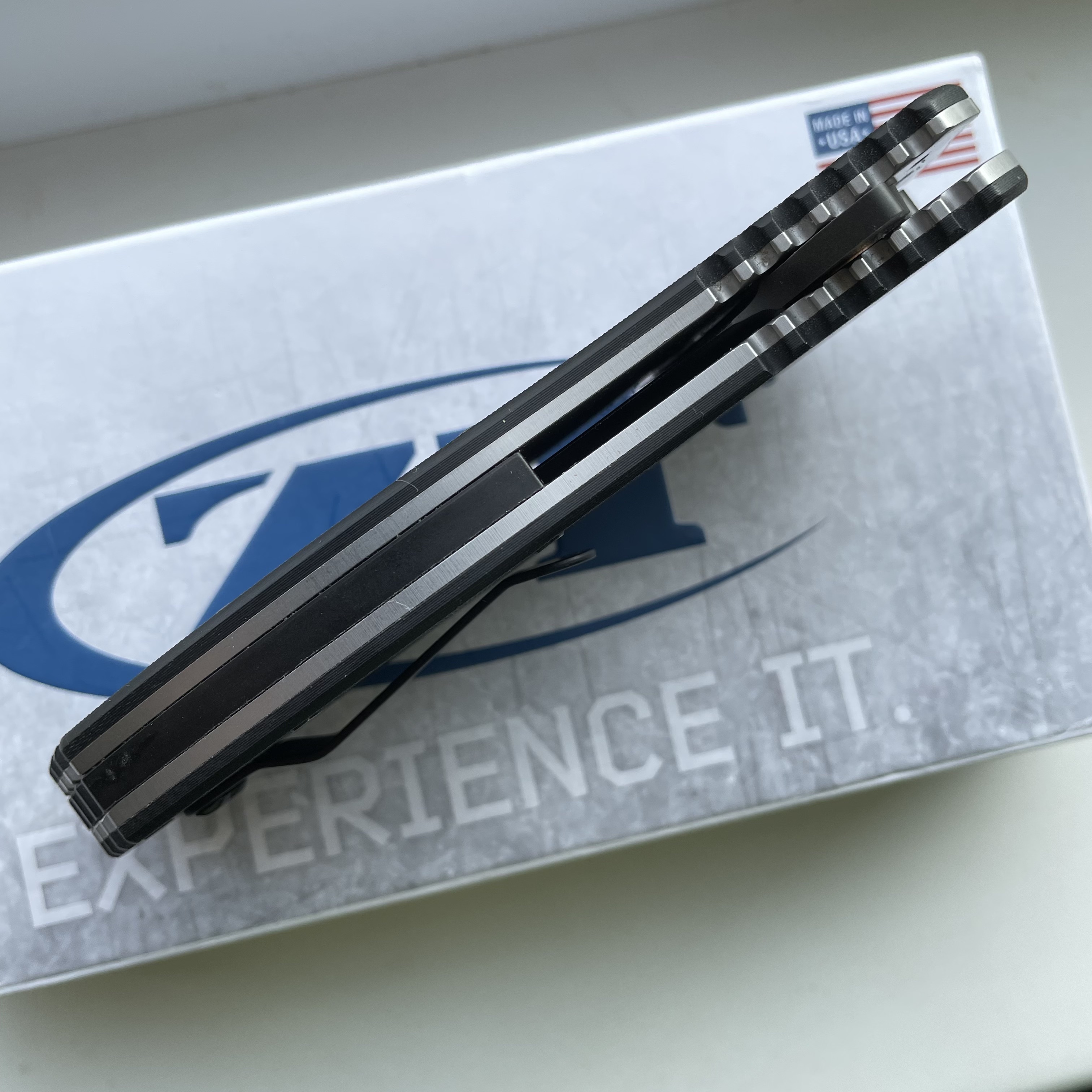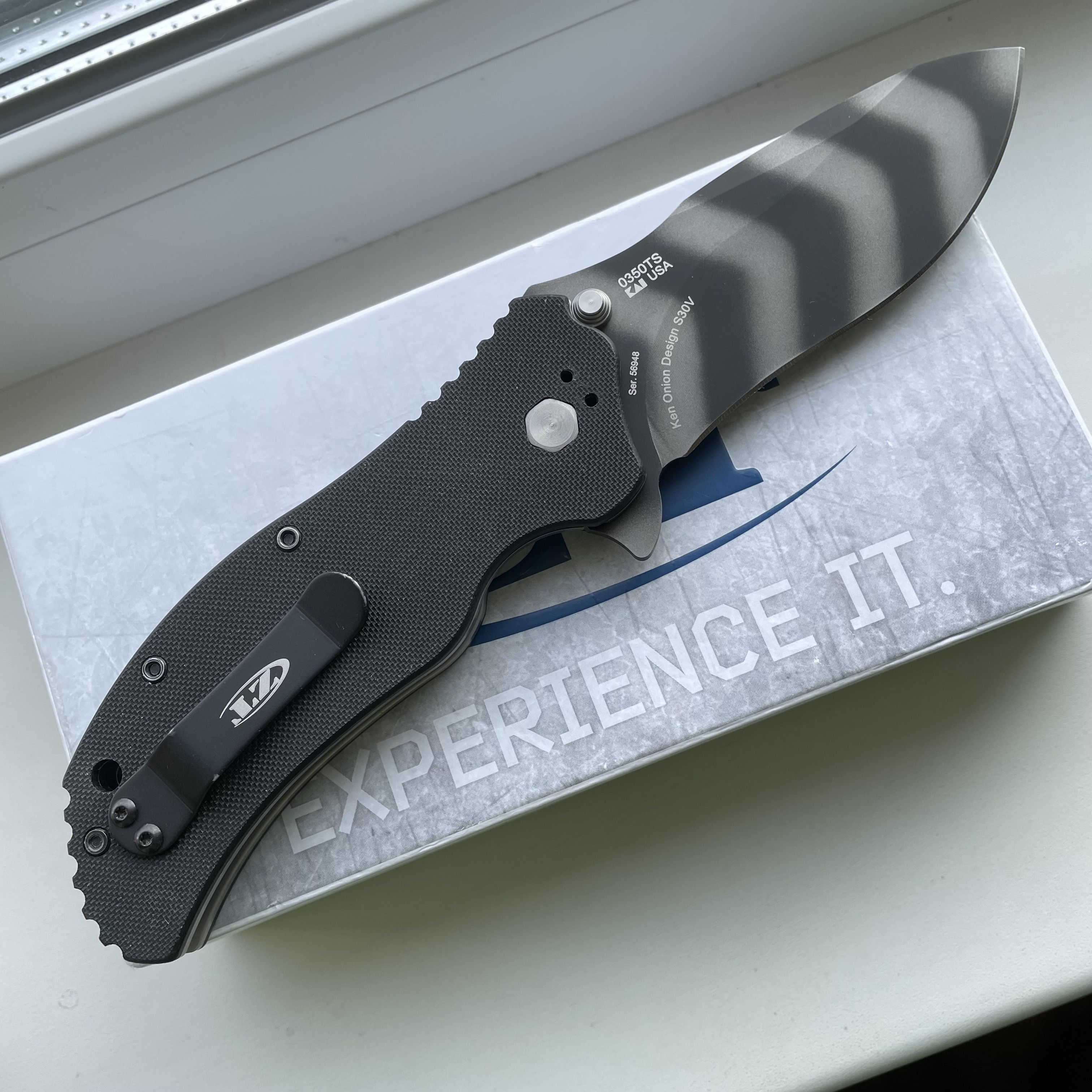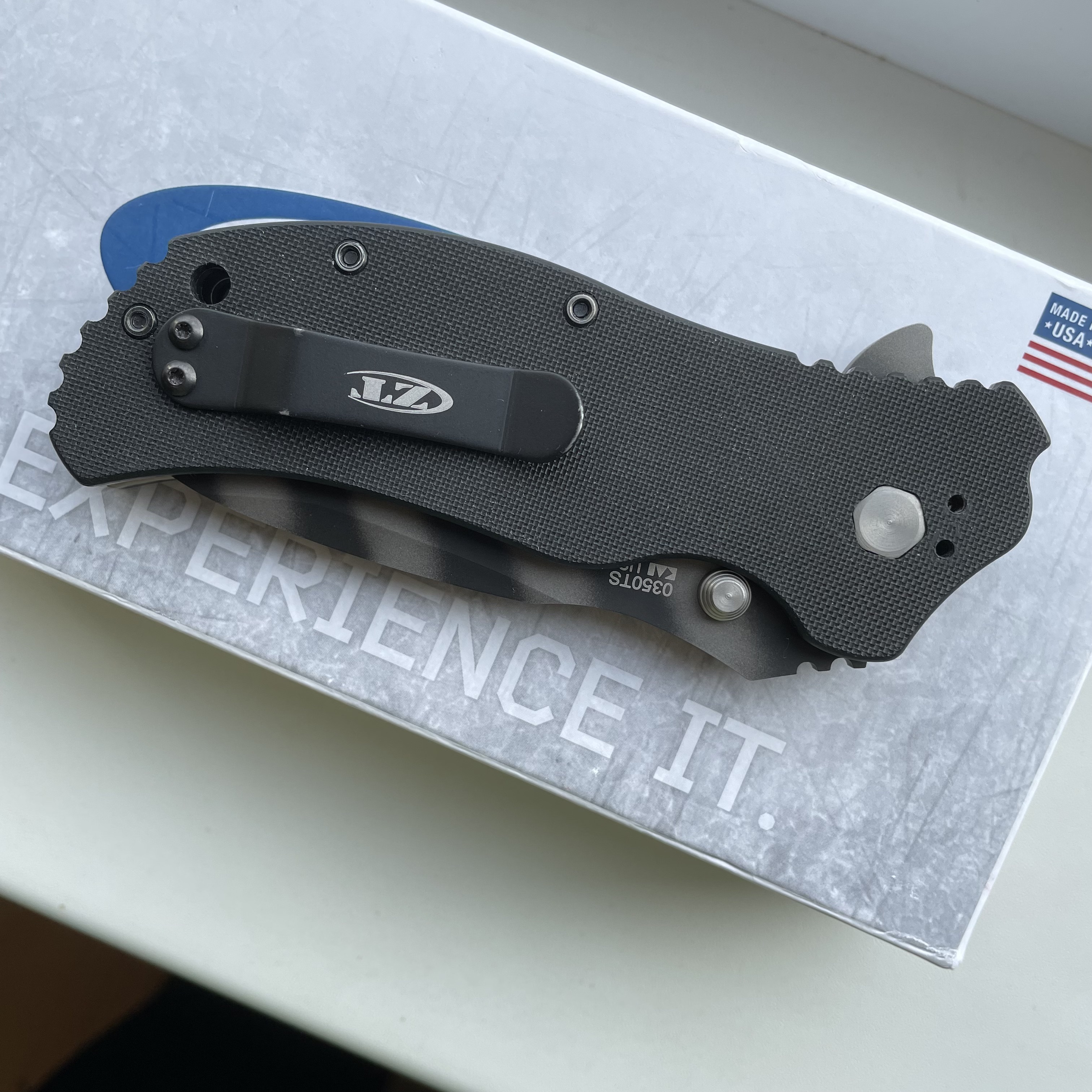 Zero Tolerance 0350TS CPM-S30V (б/в, комплект) Ціна - 7500грн. ТТХ: Марка сталі - CPM-S30V Довжина клинка - 83мм Замок - Liner lock Загальна - 193 мм Товщина клинка - 3.3 мм Матеріал руків'я - G-10 Фінішна обробка - DLC Tiger Stripes Кліпса 4-х позиційна Вага - 176г Країна виробник - США #ZeroTolerance #S30V