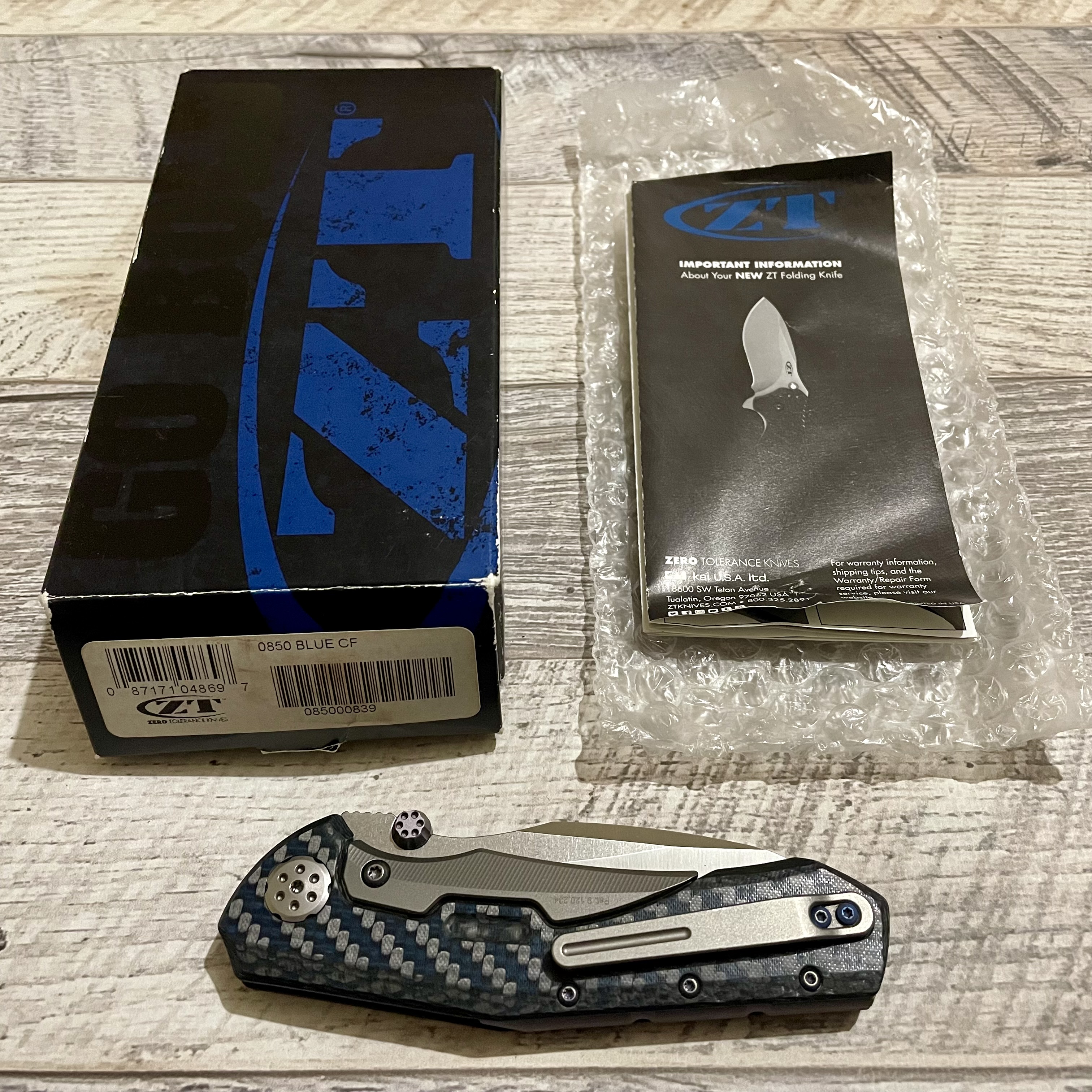 Складний ніж Zero Tolerance 0850 Blue CF Sinkevich Rexford 20CV