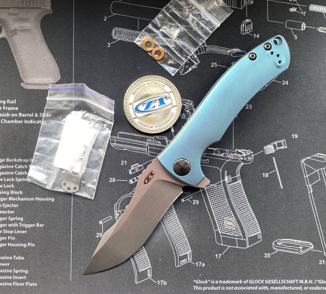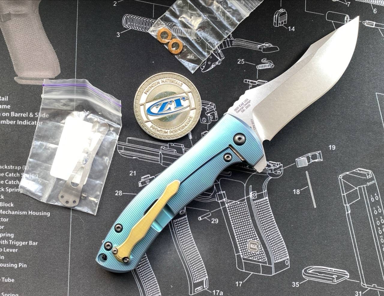 Zero Tolerance 0920 CPM-20CV Модель розроблена американським ножовим майстром Лесом Джорджем на основі його відомого ножа Harpy. Ніж був в обережному використанні. Все по заводу, клинок по центру, механіка в ідеалі. Люфтів немає. В комплекті титанова кліпса MXG GEAR, шайби Skiff для заміни підшипників, оригінальна кліпса і фірмова монета ZT. Комплект без коробки. Довжина загальна, мм: 229 Тип замку:Frame Lock Довжина клинка, мм: 99 Товщина клинка, мм: 4 Вага, г: 153 Країна виробник: США продано Передплата на картку. Доставка Новою Поштою.