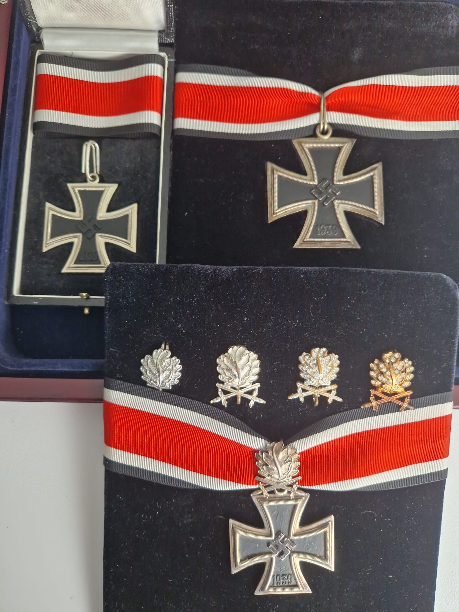 Вот так носили эти награды Рыцарский крест носили только на шее. А у вас еще с дубовыми листьями и мечами. Это равноценно нажему ГСС
