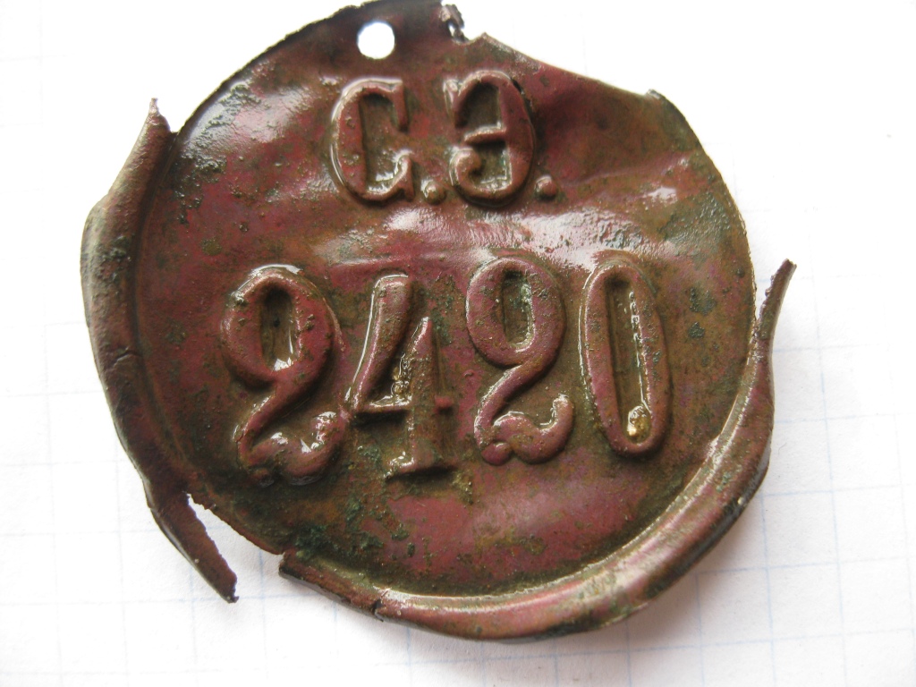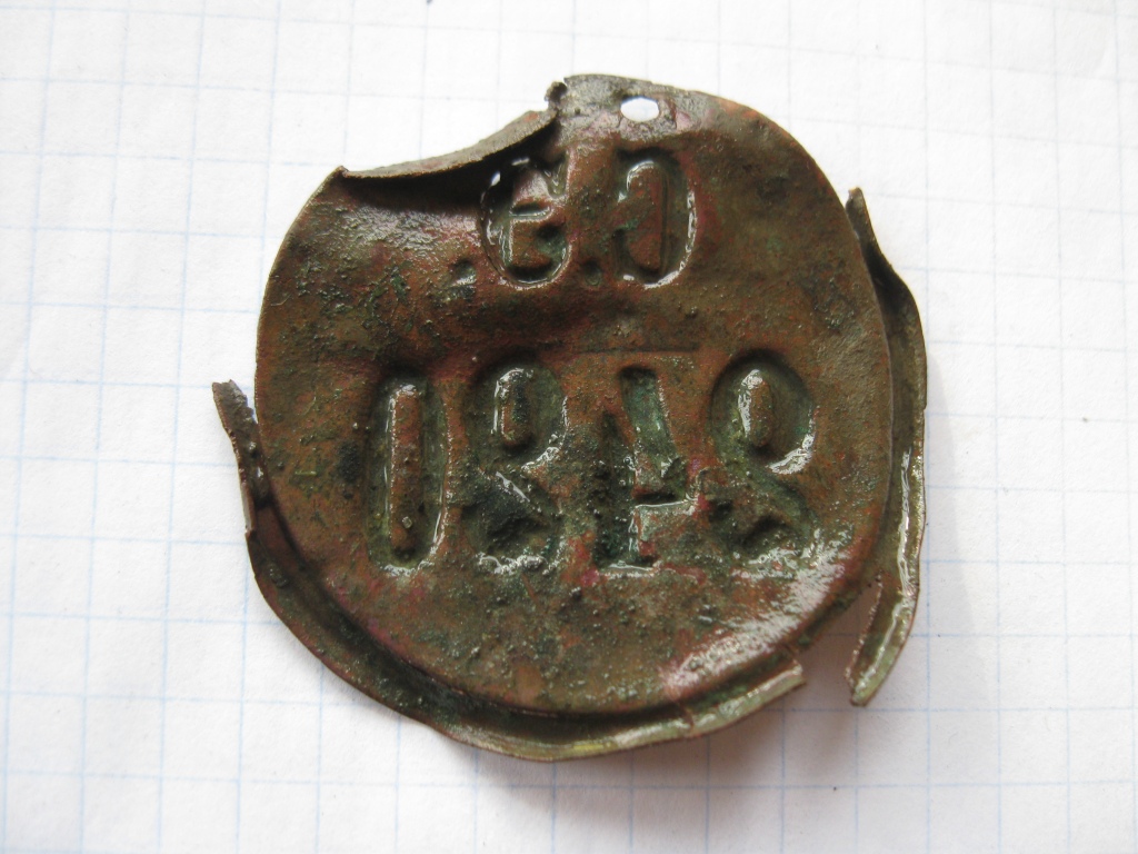 ну и что означает номер больше 2х тысяч , и аббревиатура С.Э ????? кто-нибудь кроме бездумных пользователей фиолетовой помойки может дать на это ответ? На фиолетовом еще и не такое дерьмо толкали с подписью " раритет" нет номера части и указания подразделения , а номер более 2х тысяч вообще уводит в область Космических легионов , Межгалактической Империи.... Бирка , вещевая или инструментальная , или жетон - пропуск , на предприятие( завод или фабрику ). ИМХО конечно , но если кто-то покажет Личный Знак РИА с подобной маркировкой ( и ссылкой на подразделение ) - буду благодарен , за неведомую до сих пор инфу......