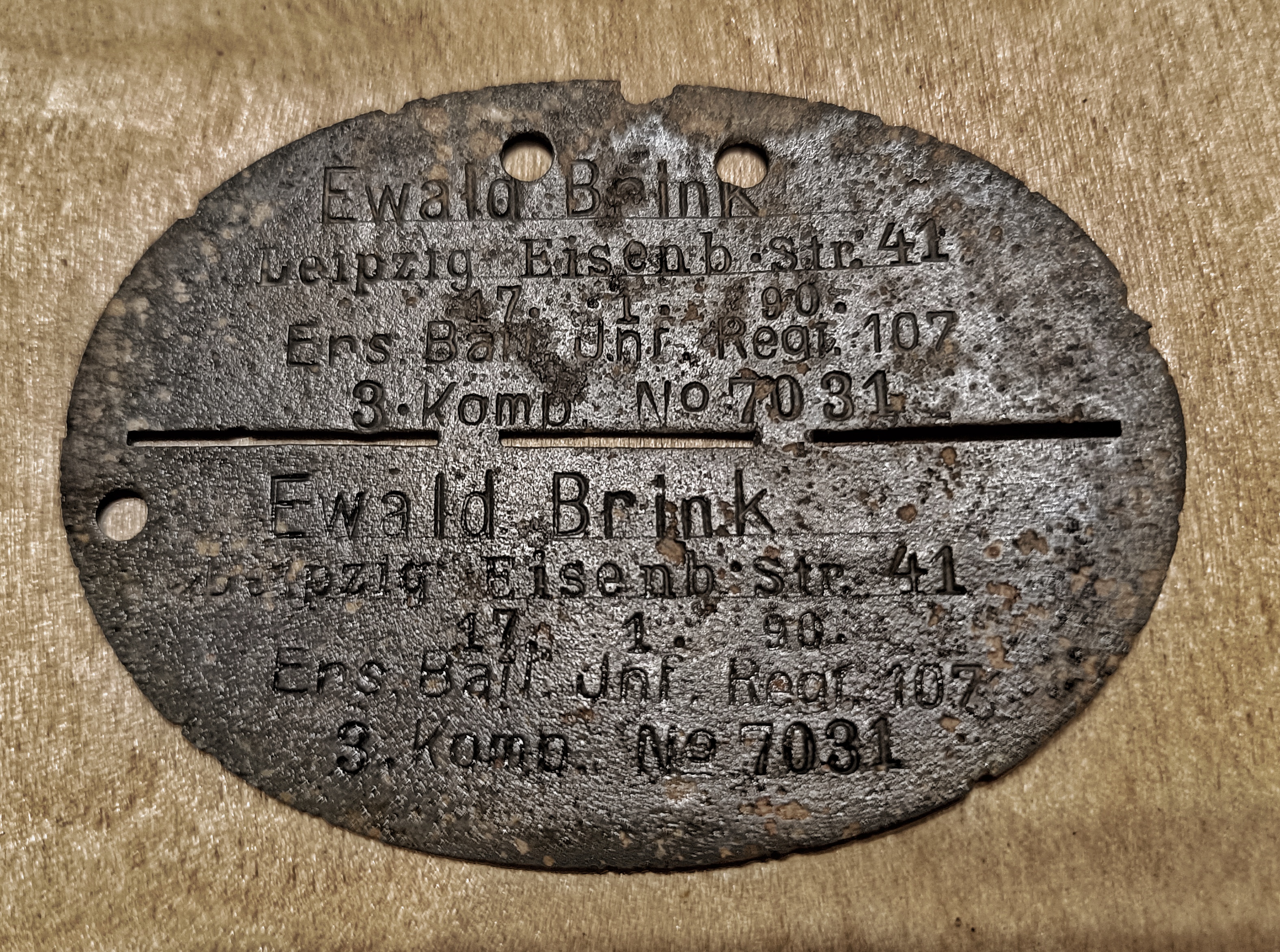 Эвалд Бринк из Лейпцига. Год рождения - 17.01.1890. 3-я рота запАсного Батальона 107-го Пехотного Полка на другой стороне - 5-я рота 244-го Пехотного Полка.