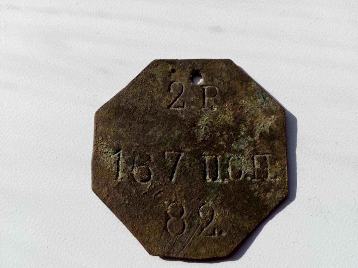 Сегодня на копе выскочил такой вот жетон. Принадлежал солдату 2-й роты 167 пехотного Острожского полка РИА. Не чистил, только помыл с мылом. Металл цветной, крепкий. IMG_20181014_135049.jpg IMG_20181014_135103.jpg