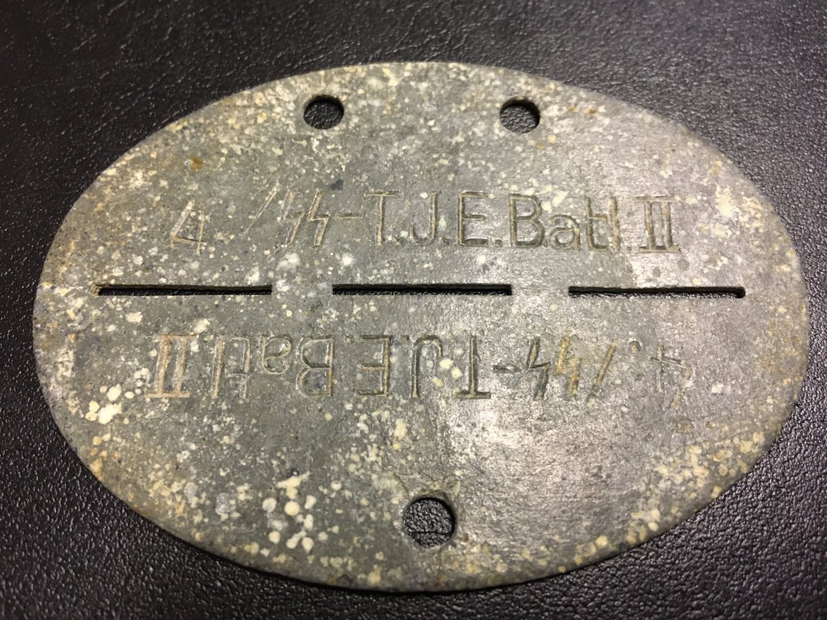 Есть раздел на форуме: erkennungsmarke. Там расшифровываем жетоны. Там же и обсудить можно. Набито, да, учебка пехоты для нужд Тотенкопф. Если жетон нашли в гараже, у родных, более 15 лет уже, откуда же ему левому взяться и смысл обсуждать? Если только купили на рынке или кто набил и как то в гараже отказался...