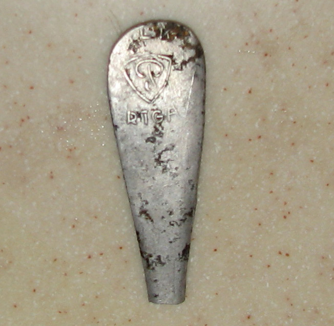 Абсолютно пустое место в лесу. В квадрате 150*150метров пусто,ни каких сигналов..Возле одинокой стрелковой ячейки попался странный набор. Кусок ложки с клеймом Рига,две гильзы маузера и жетон. После расчитки вылезла надпись СССР,под ней в центре серп и молот, и номер Чей жетон? Мне видится какой-то стукач(сексот) Дополню.Размер жетона ,как советские 5коп.