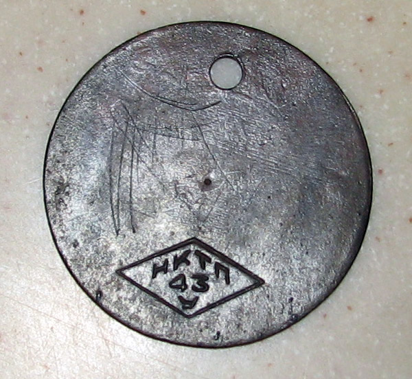 Бирки имеют отверстие для крепления.Каким образом предполагается крепить жетон? На то он и сексот (секретный сотрудник). А о какой секретности может идти речь если он с жетоном Дык когда поймают в форме врага,чем докажеш верность родине? Не правильно видится Это на получение какой нить фигни на складах... инструмент там или пайок... Х.З. Возможно.Просто все ранее найденные бирки и жетоны не имели серпа и молота+СССР.