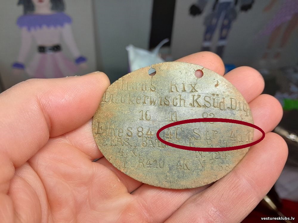 Доброго дня, камрады! Друг нашёл жетон WWI. В общей расшивфровке, как бы, вопросов нет, но не понятны нюансы первого подразделения, где он служыл - E. Res. 84. 4C Str 411 Ersatz Reserve 84 Rekruten Depot - понятнo: но что обозначает набивка 4C Str 411 непонятно. Есть какие нибудь варианты? З повагою, Валдіс! Слава Україні!