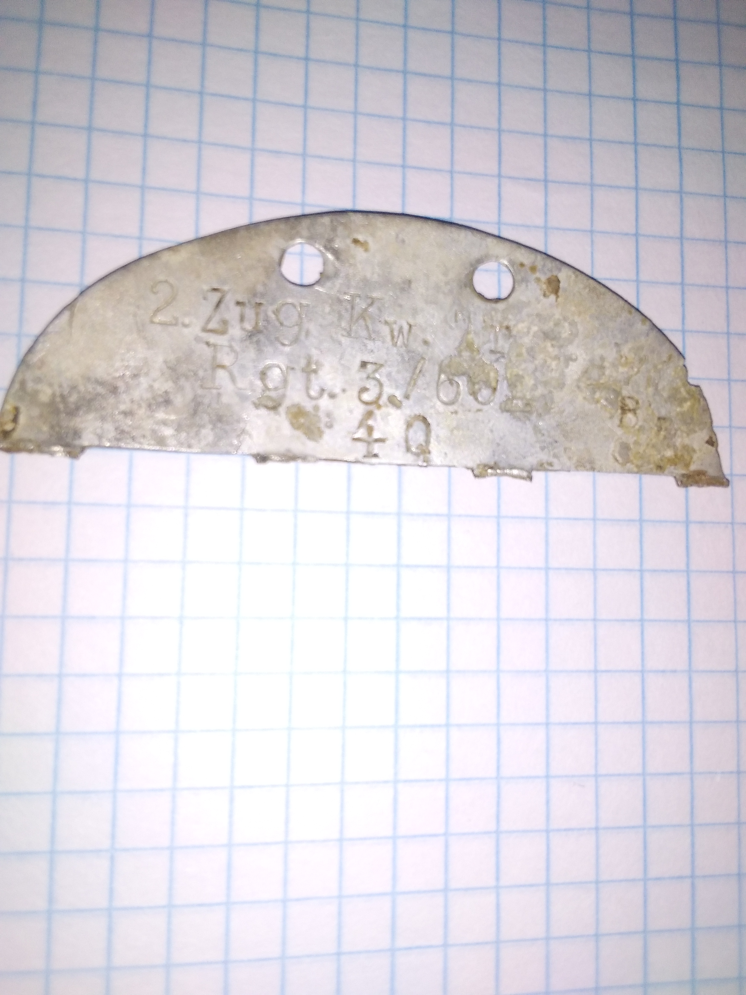 Доброго! Бачиться 2 взвод 3 роти 602 автотранспортного полку, списковий номер 40, група крові В (ІІІ). Взагалі для жетонів на форумі є окремий розділ https://reibert.info/forums/erkennungsmarken.45/ Для оцінки теж https://reibert.info/forums/skolko-stoit.32/ З повагою,