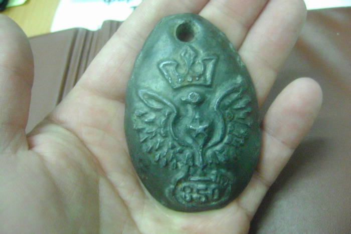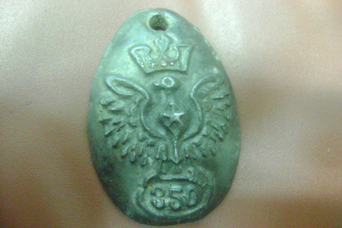 А металл какой? Как по мне напоминает грузило из свинца для рыбалки под "кормак",сам такие отливал в ложке. А рельеф в виде орла с короной и номером умелец какой-то сварганил как отличительный знак
