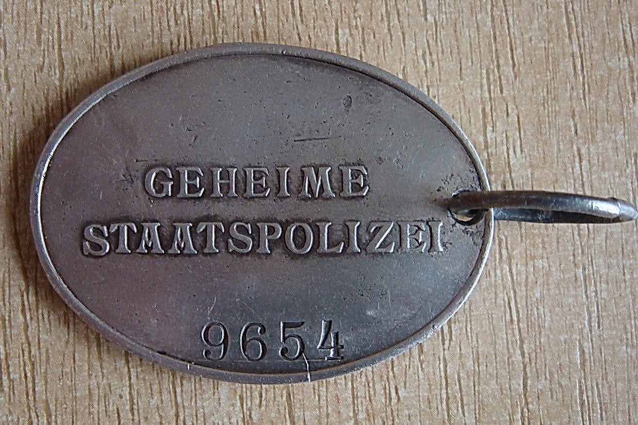 Ранние жетоны гестапо чеканились из высококачественного материала-сплава никеля и серебра(!) из такого же какого чеканились жетоны для высших чинов Прусской Полиции. Конечно же они были не магнитные. Четыре из этих дисков были найдены в Дании,все их номера были в промежутке от 1000-2000. Три из этих жетонов присуствуют в Музее Датского Сопротивления. Остальные в частных коллекциях. Один из жетонов музея авсолютно не вызывает ни каких вопросов. 5 мая 1945 года его вместе с удостоверением выбросил агент гестапо в саду города Оденс.