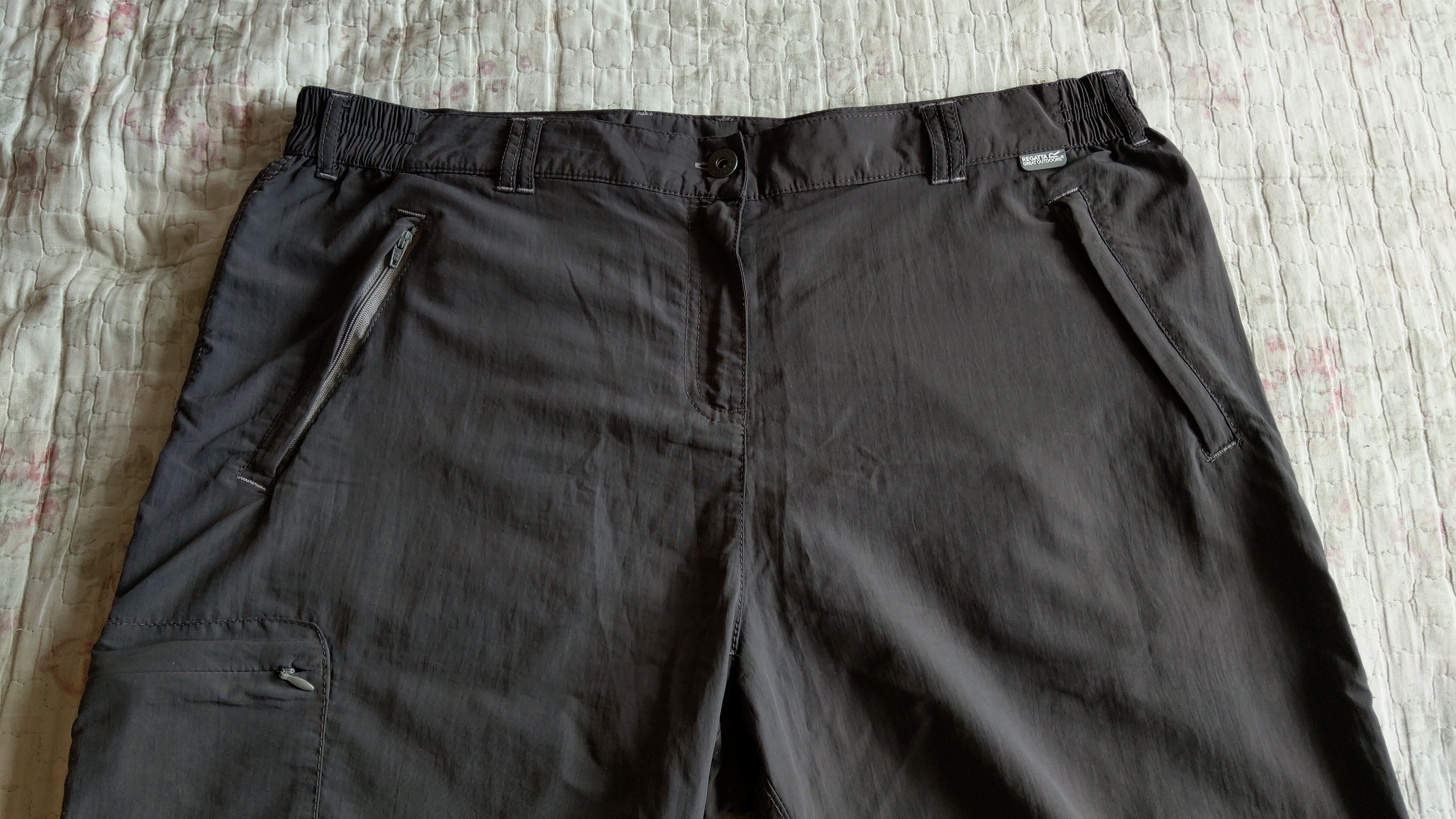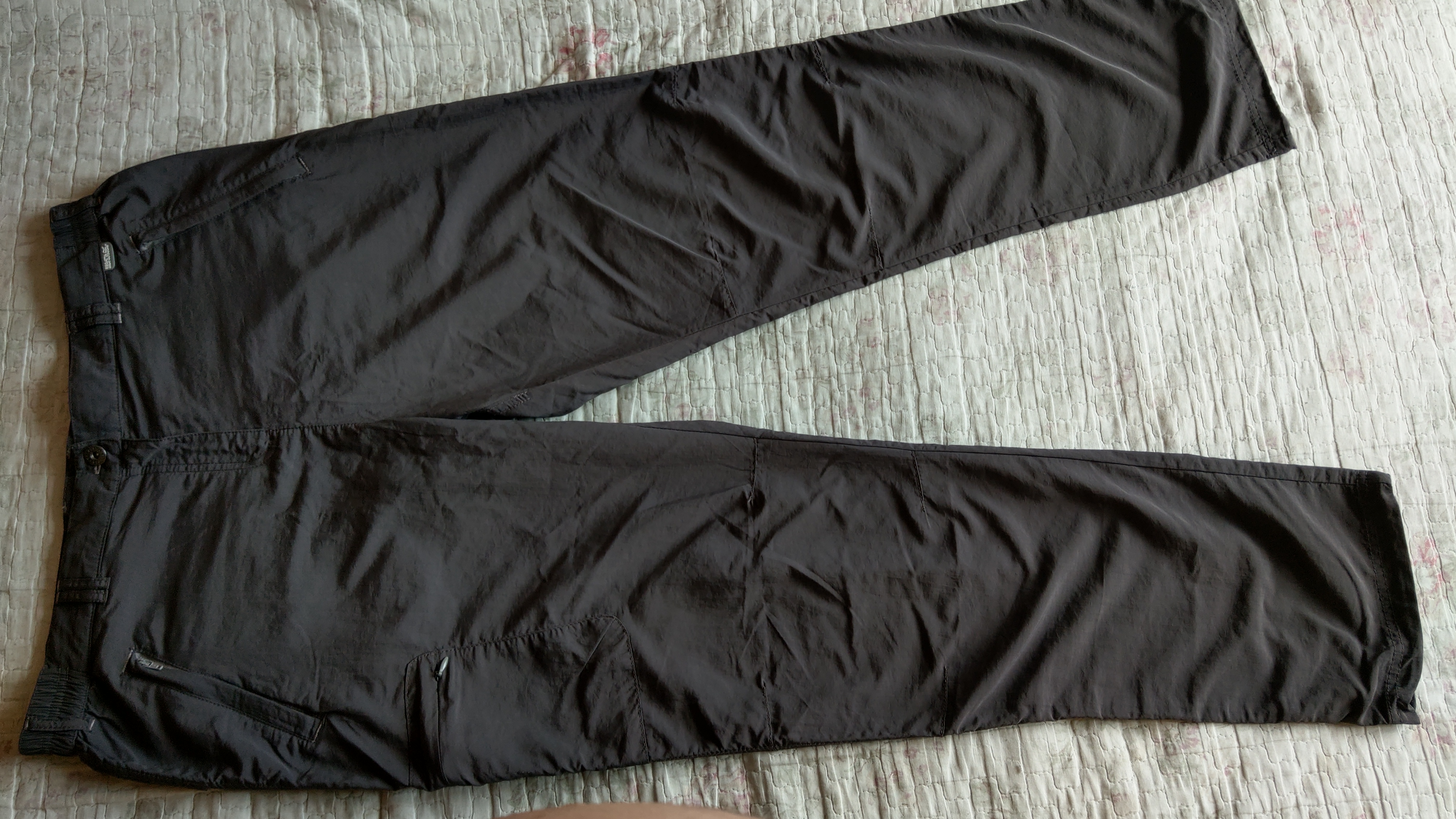В ідеальнішому стані ,без нюансів. Колір мокрий асфальт.Тканина дуже легенька (сезон літо).Бірка нажаль зрізана. Дві кишені на блискавці, дві на липучці та одна на нозі. Пояс з резинкою.В низу штанини затяжка. Пояс 46 і тягнетьця. Бедра 61. Зовнішній шов 107, внутрішній 79. 400 грн.