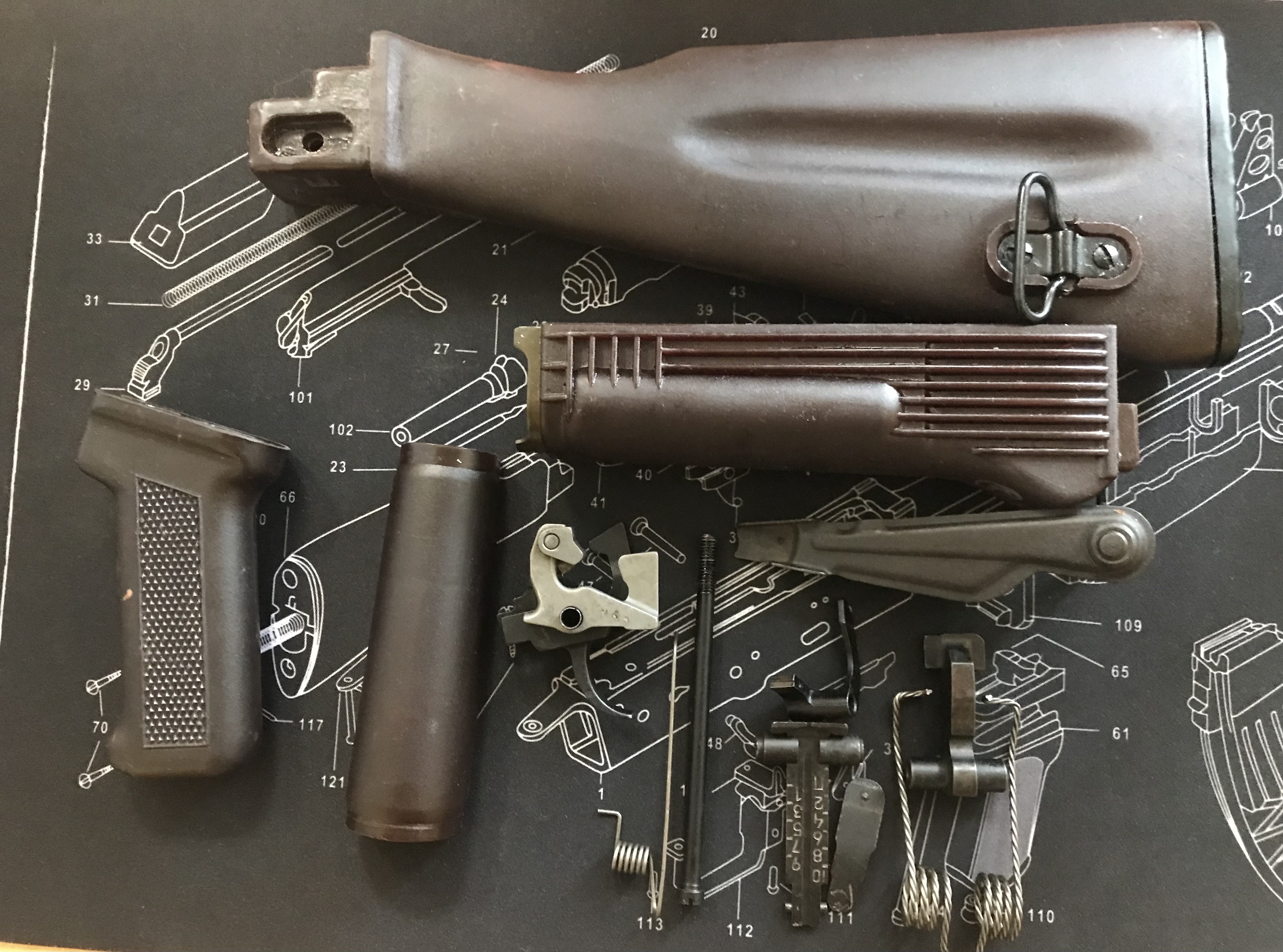ЗИП АК-74. 1.Приклад слива (склад) 2.цевье с экраном (склад) 3. накладка газовой трубки. 4.пистолетная рукоятка. 5. Винт рукуяти. 6.УСМ (комплект). 7.Автоспуск. 8.Пружина автоспуска. 9.Курок. 10.Боевая пружина. 11.Прицельная планка на 1000 м. 12.Пружина прицельной планки. 13.Предохранитель (переводчик огня). Обвес в идеальном состоянии не устанавливался. Комплектом выставляется один раз. БОЛЬШЕ НИЧЕГО НЕТ! Цена за все 12000 гривен. Оплата на карту приват банк. Отправка новой почтой.