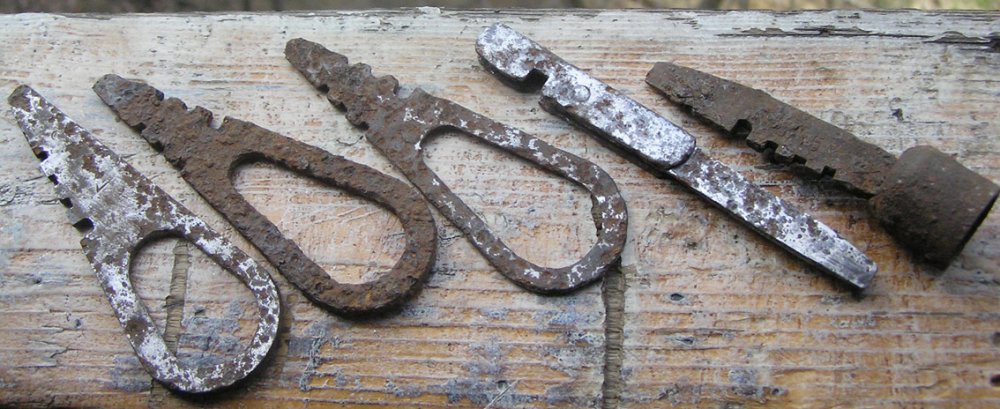 От ППШ/ППД тут только Т - образная отвертка. Слева от нее - три поздние мосинские отвертки, справа - ранняя мосинская отвертка в цоколе от сгнившей деревянной ручки.