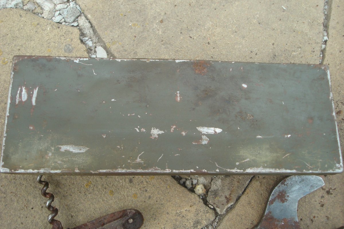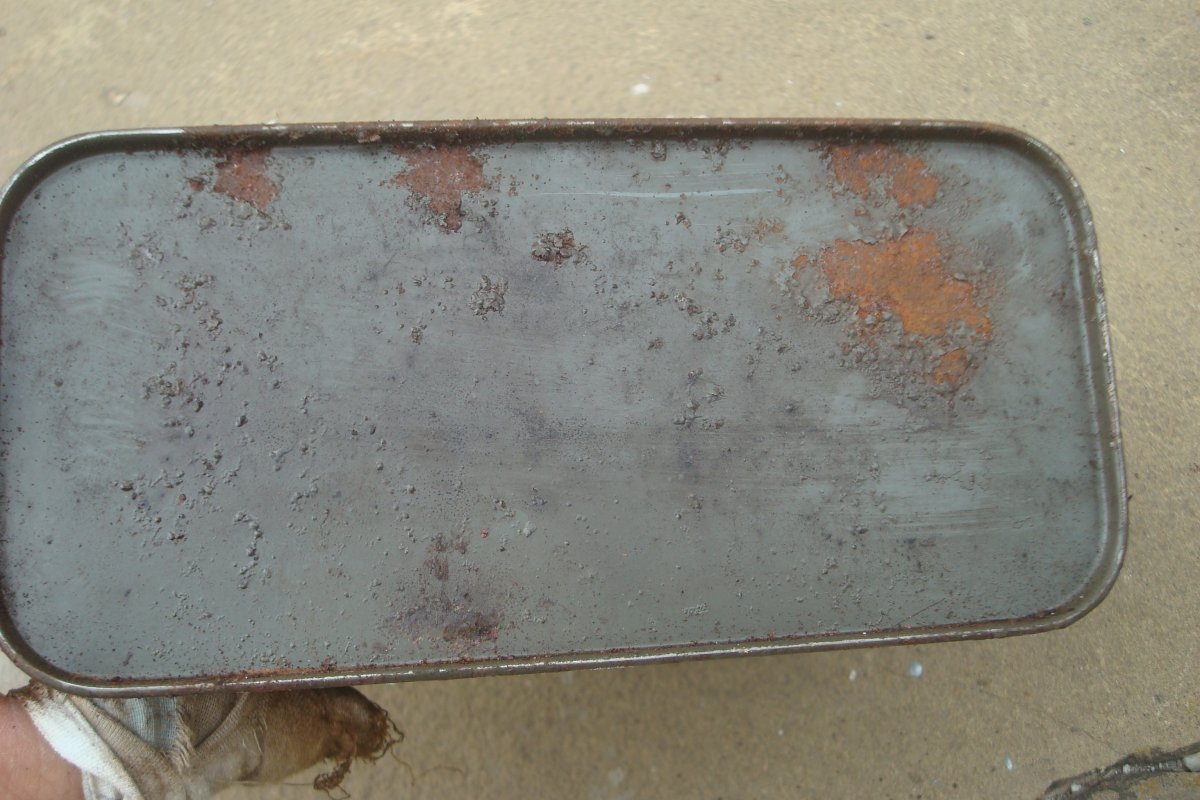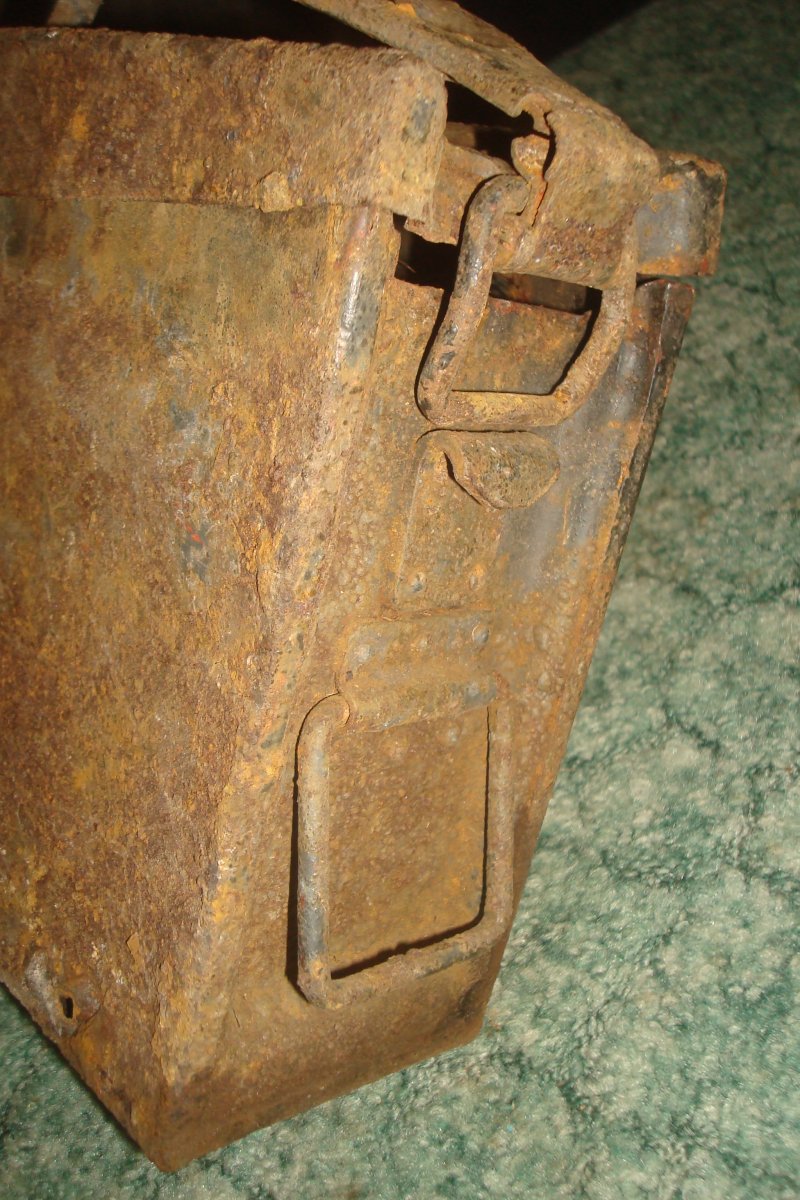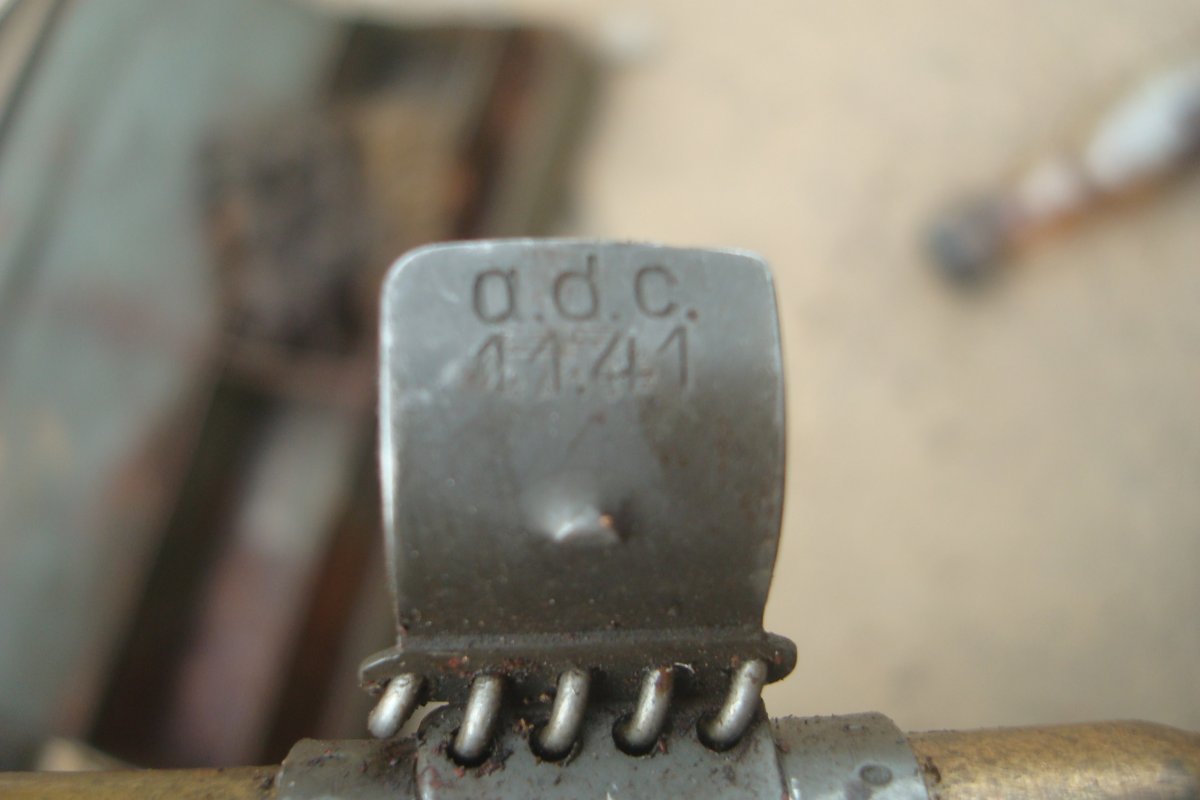 Приветствую всех! Подскажите по стоимости данных прдметов. Находились в металлическом ящике от МГ. Ящик тоже крепкий, без дыр. Соответственно и сохран внутри подобающий. Ключем, судя по забоинам, немец работал интенсивно. В пузырьке - масло, колпачок откручивается. Перочинник тоже оттуда, но пострадал больше всего. В коробочке лежал еще ударник МГ 34 с пружиной, но пружина, несмотря на сохран, оказалась сломанной на две части. Интересно также клеймо на ленте, раньше такого не попадалось.