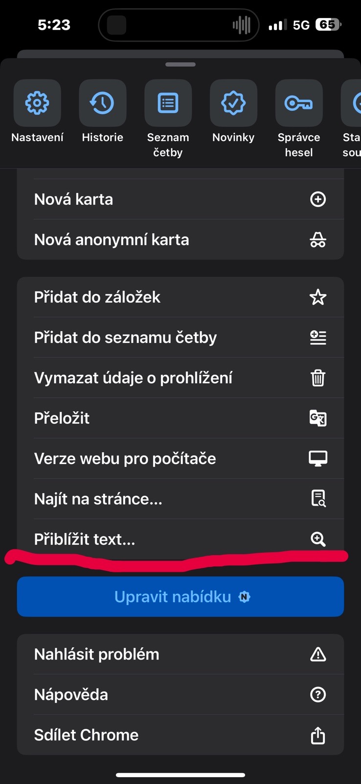 Якщо IOS ,то зробіть так: Натисніть. « … «. У нижньому правому кутку екрану,виберіть пункт -наблизити текст (у мене чеська мова),далі зверху екрана зʼявиться «+ -« натисніть потрібне,обновіть і готово.
