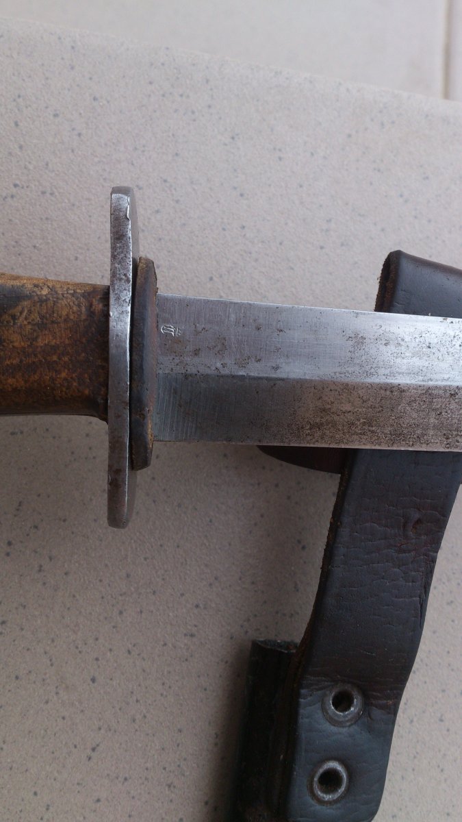 Доброго времени,уважаемые коллеги.Достался нож.Подскажите,пожалуйста,что за значек впихнули в рукоять.Подвес тоже не родной.С уважением.