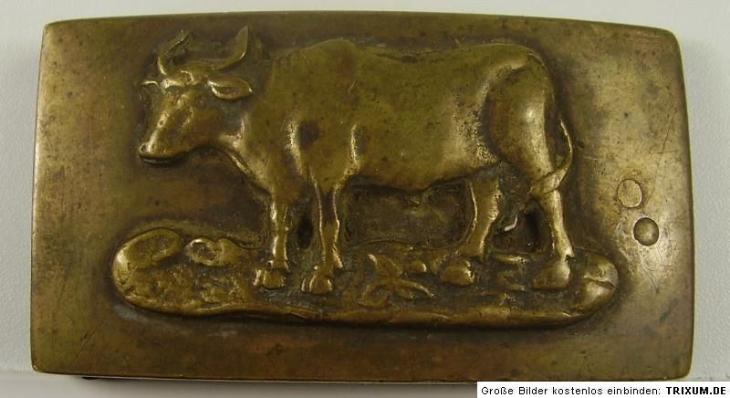 голова коровы говороит о профессии. здесь, я думаю, человек, потерявший значок, был мясником. мясник или Metzger, Fleischer -почётная профессия в немецкоязычных странах, принадлежность к ней обозначалась пуговицами, значками, пряжками с символами домашнего скота.