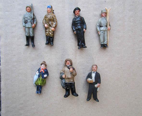 Фарфоровые значки-фигурки из серии WHW (Зимняя помощь фронту), окрашены вручную! Пехотинец Вермахта, Летчик, Танкист, Горный егерь, Официант и Рыбаки. Верхний ряд по 250 грн.шт. Нижний ряд: 100 грн. шт.