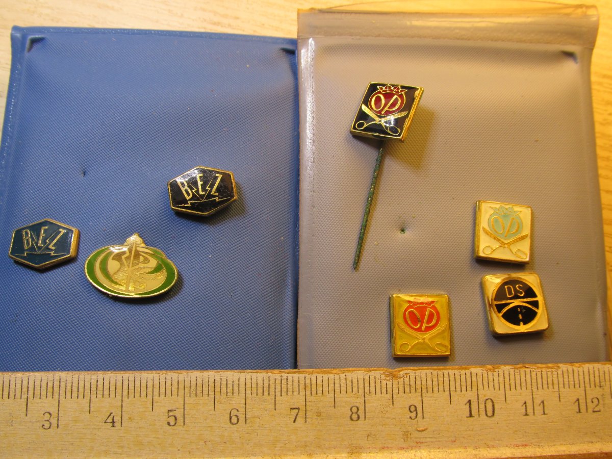 Приветствую вас! Помогите с оценкой таких значков, привезены с Германии. Ножки от хранения в футлярах окислились. Спасибо.