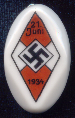 ГЮ, знак соревнований Hitler-Jugend 1934 г. Фарфор. Клейм нет. Цена 1500 руб.