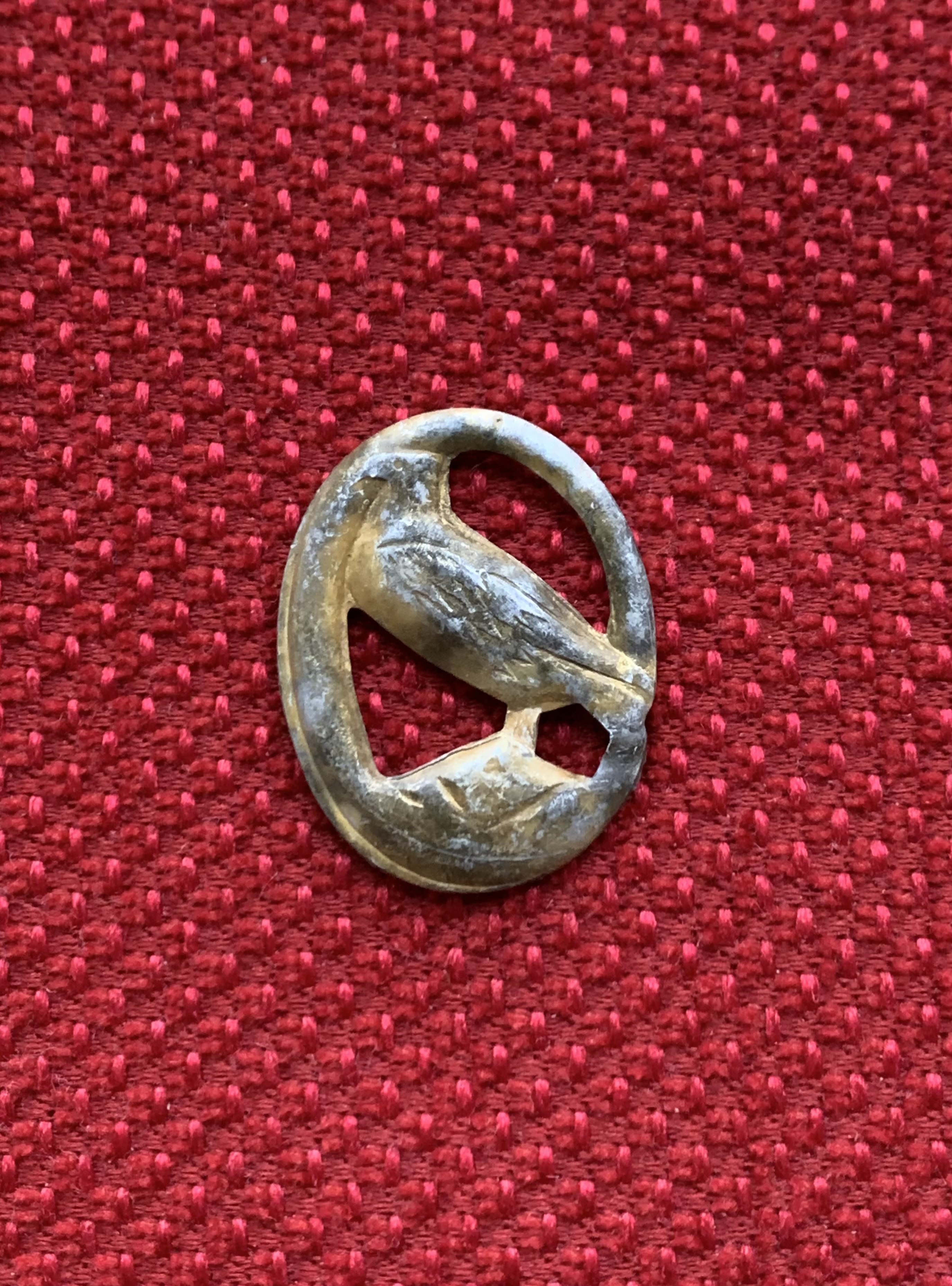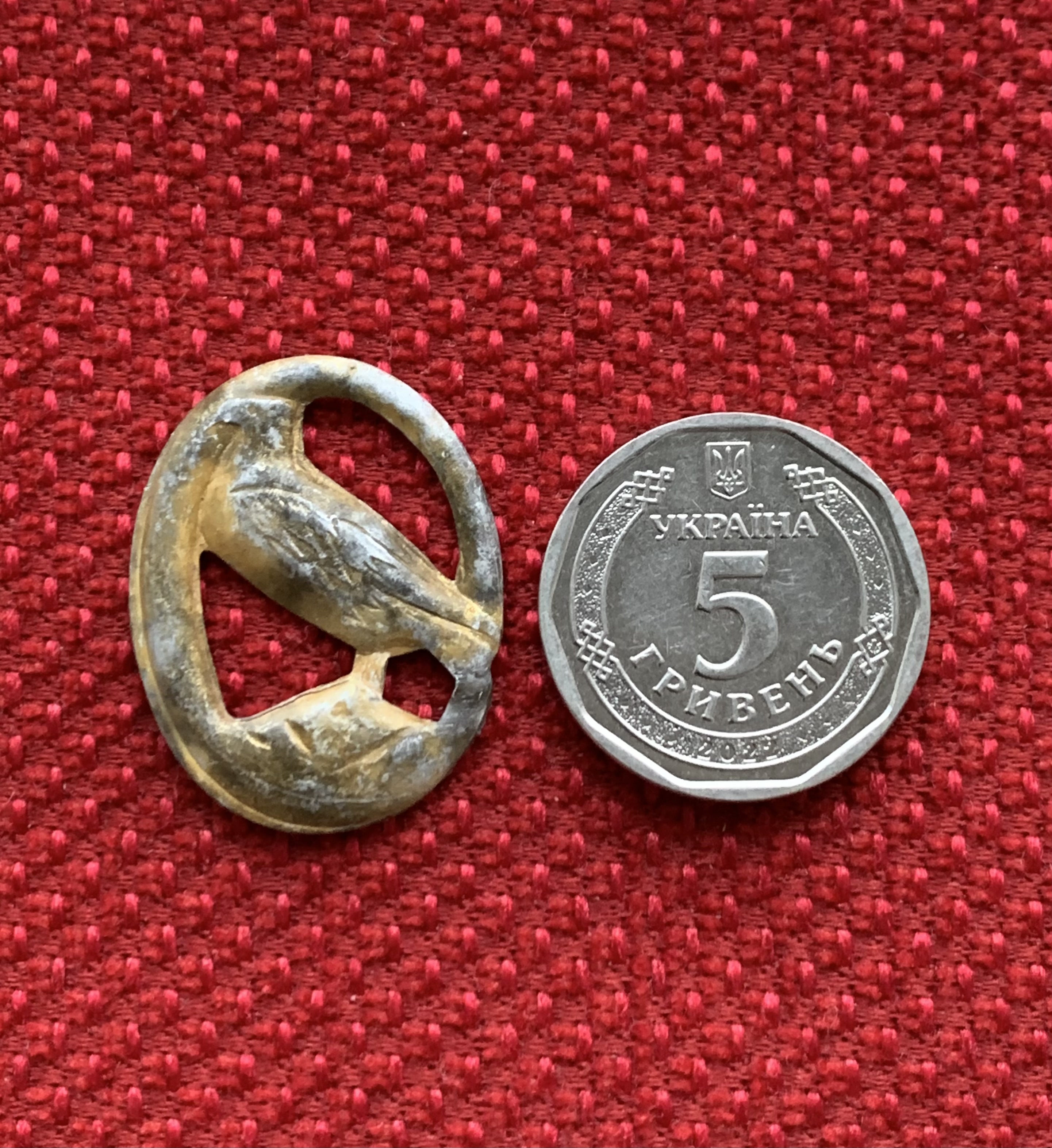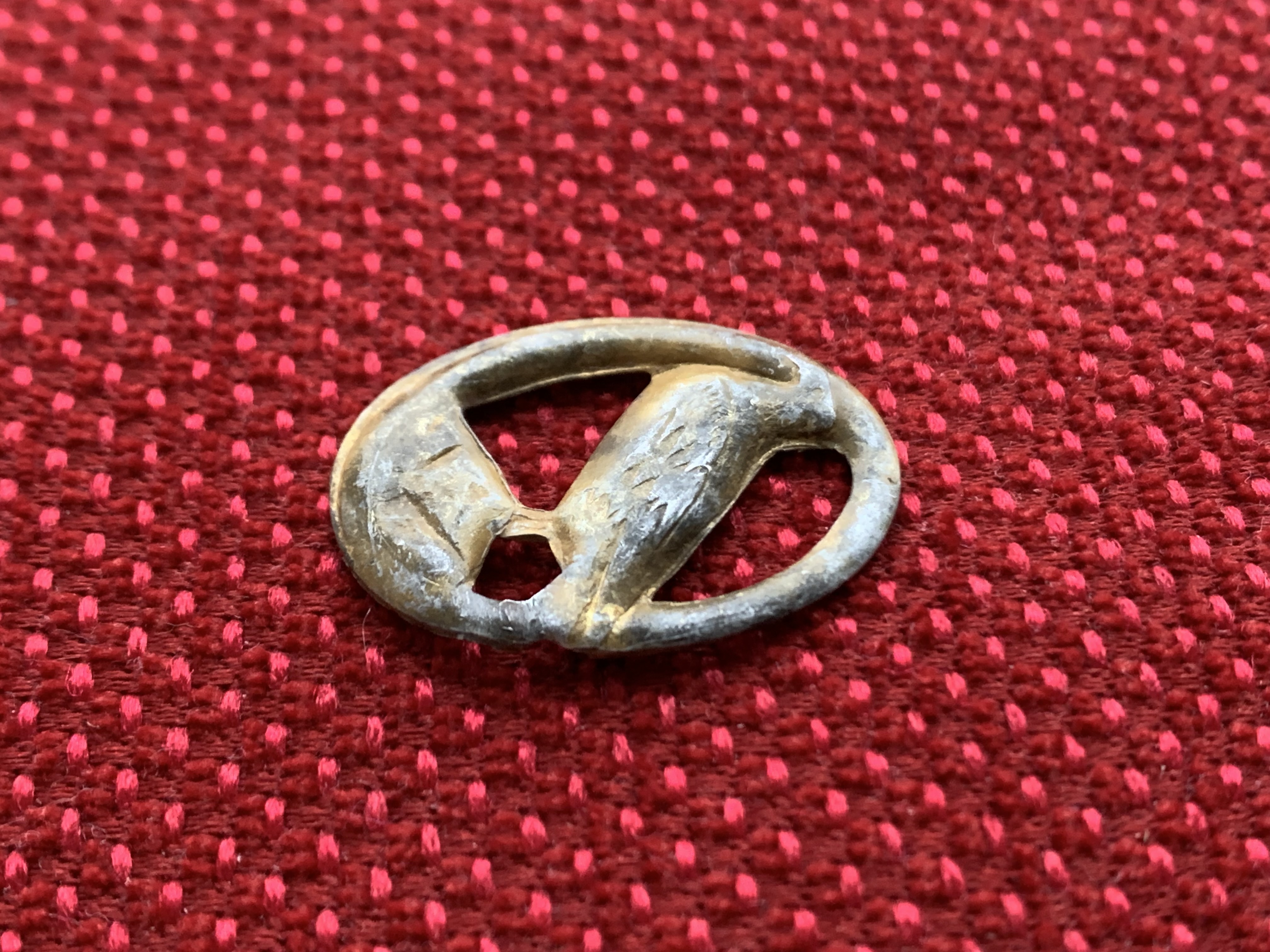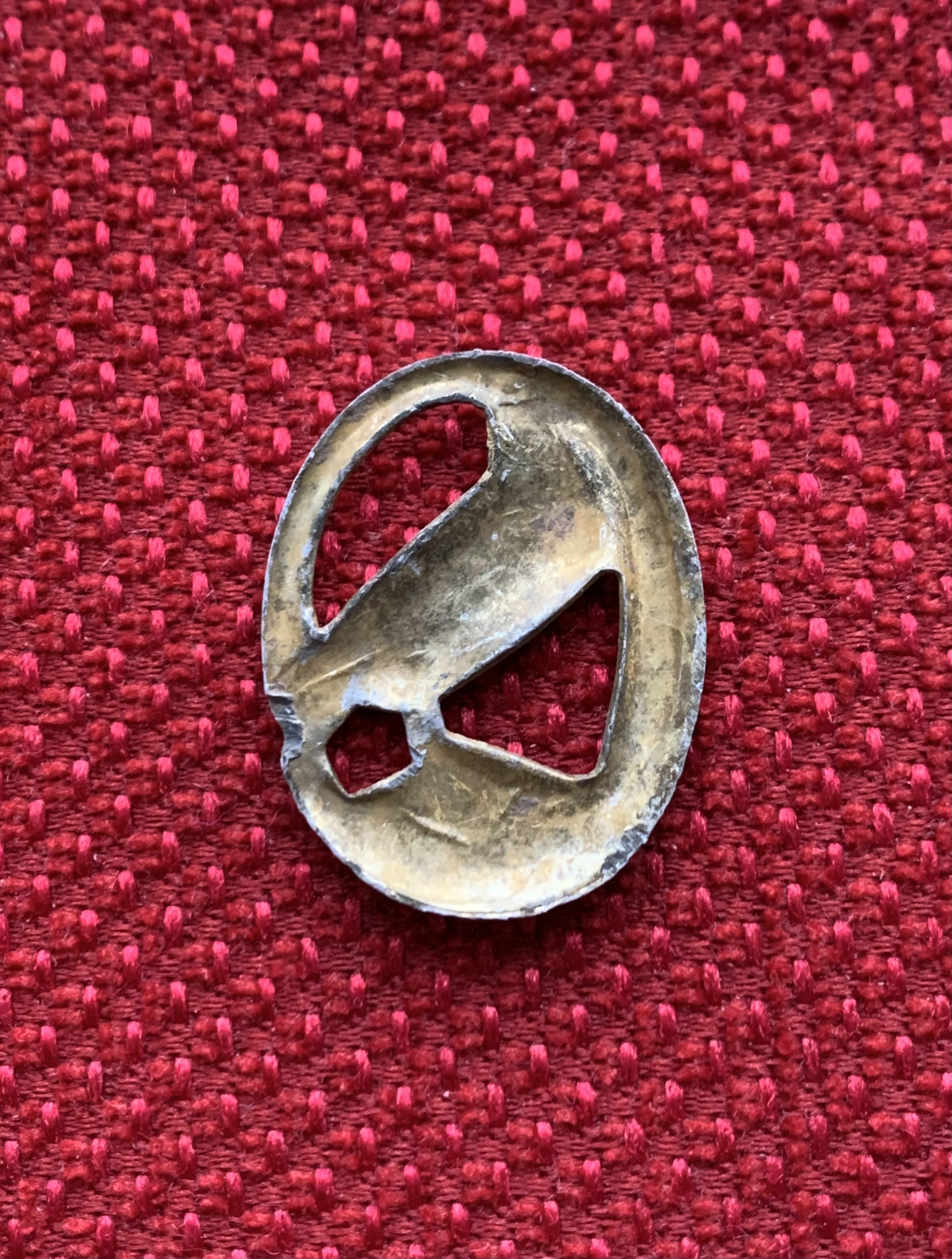 Добрий вечір! Які будуть думки: знак має відношення до вермахту чи все-таки цивілка/біжутерія? Знайдений на німецьких позиціях, стовідсотково щось їхнє, а не сучасне. Зроблений якісно. Матеріал - алюміній в золоті. Мені нагадує монетний сюжет з пʼяти рейхсмарок. Дякую за відповіді!