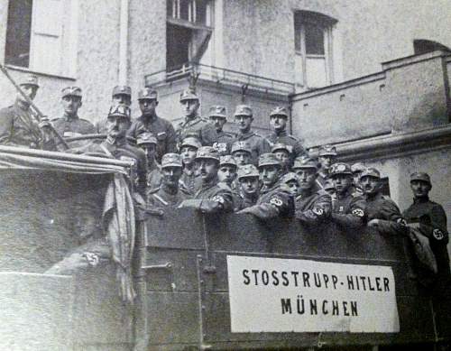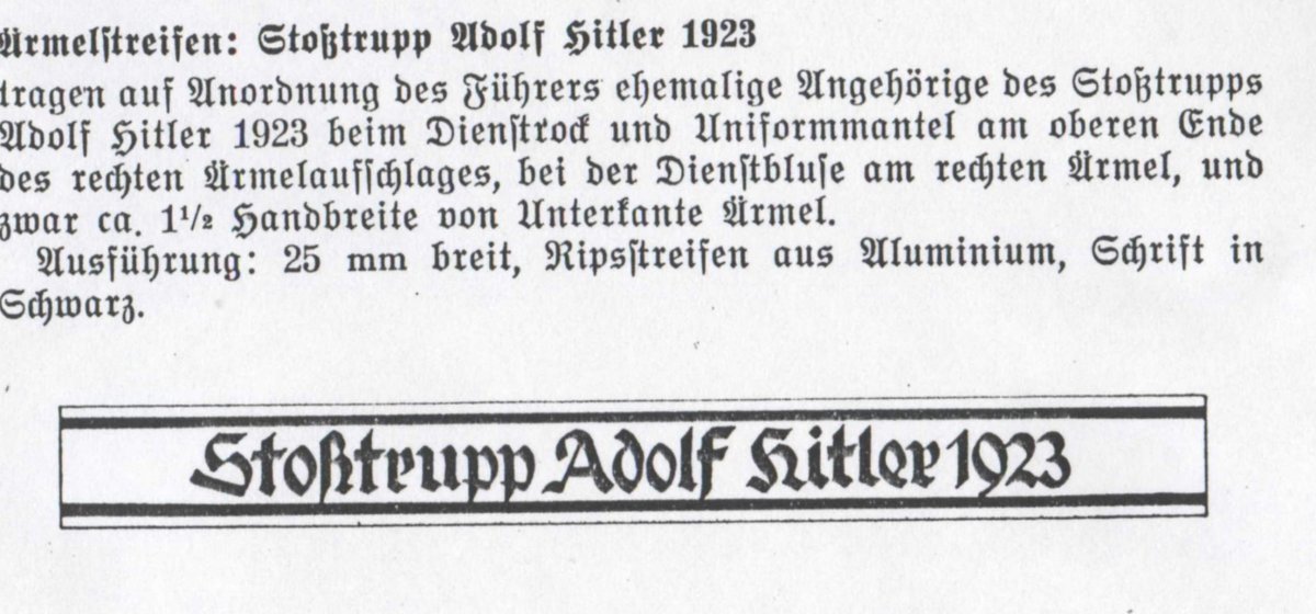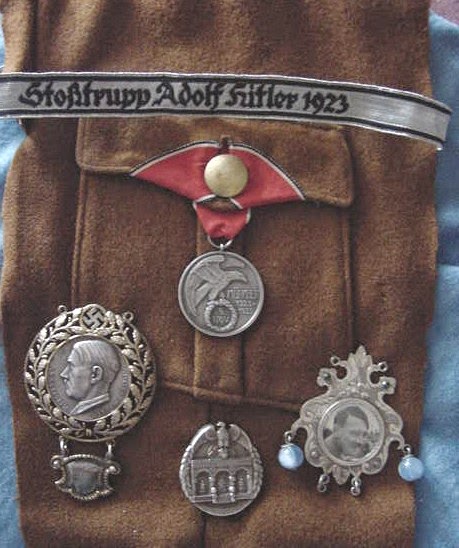 Доброго! Поддержу мнение уважаемого камрада. А по Вашему вопросу: Если под личной охраной фюрера Вы имели в виду Stosstrupp Adolf Hitler, которые охраняли его в 1923 году, то аукционный дом Hermann Historica продал три из пяти известных экземпляров знака, который позиционируют как прототип Ордена крови и знак Stosstrupp Adolf Hitler. Знак, якобы принадлежащий Гитлеру, был продан в 2010 году за 21 тыс. евро, знак Йохана Зингера в 2011 за 5800, и знак Рудольфа Гесса в 2013 году за 7600 евро. Кроме знака, была также нарукавная лента. http://wcstumpmilitaria.blogspot.com/ http://www.warrelics.eu/forum/ss-uniforms-insignia/stosstrupp-adolf-hitler-1923-cuff-title-669862/ С уважением,