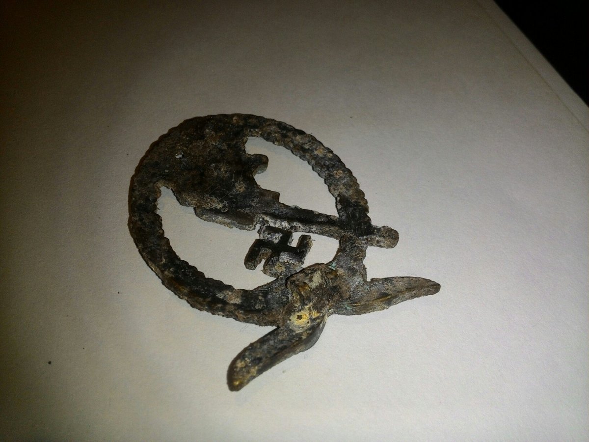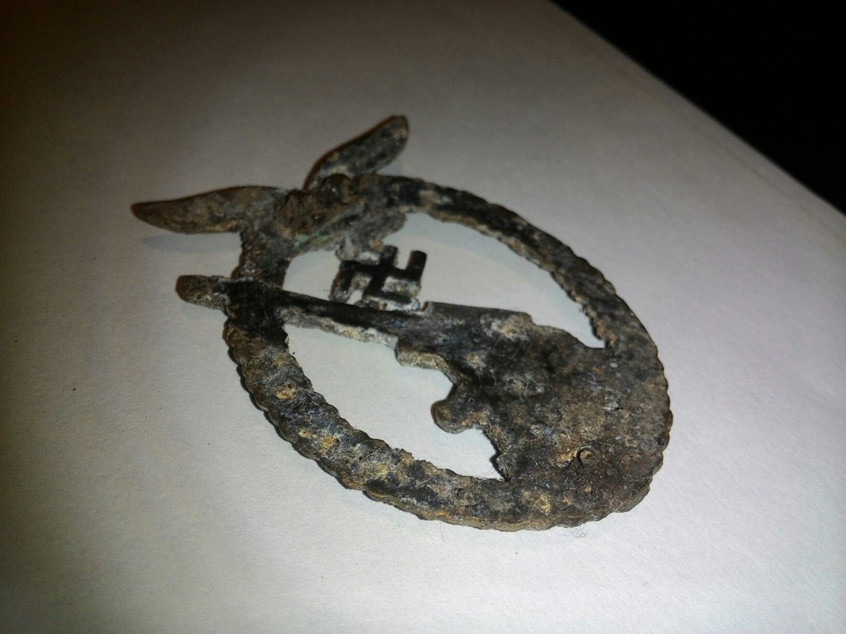 Вот он чищенный. Хорошая еврокопия. Вес сего знака 28гр, а настоящего 42гр.