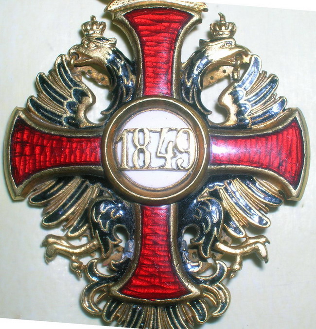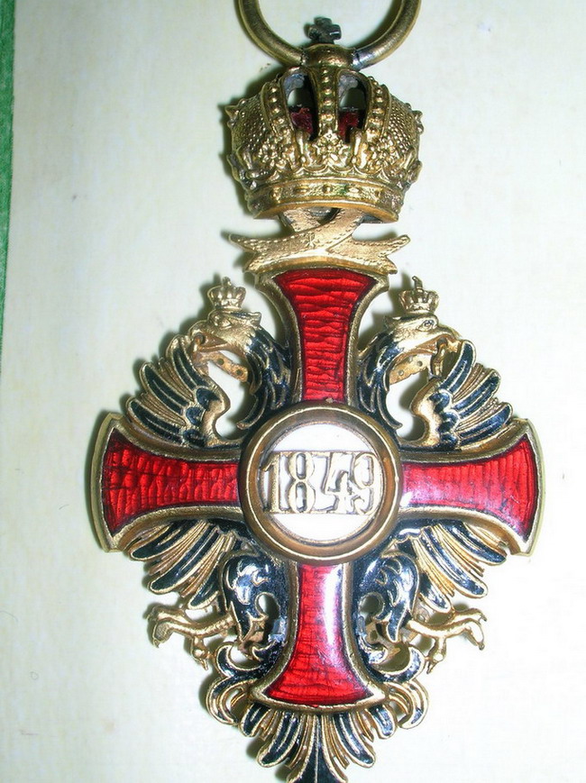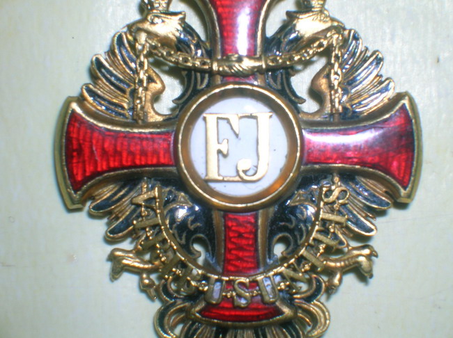 Ответ: Знак "Франц Иосиф" Красивый Командорский крест. Николаша,загляни сюда : http://ah.milua.org/awords/orders/fjo.htm http://ah.milua.org/awords/starshinstvo.htm