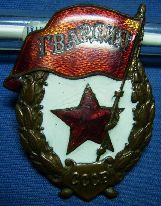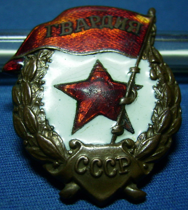 Знак Гвардия на войну,есть скольчик на знамени,на фото все видно.