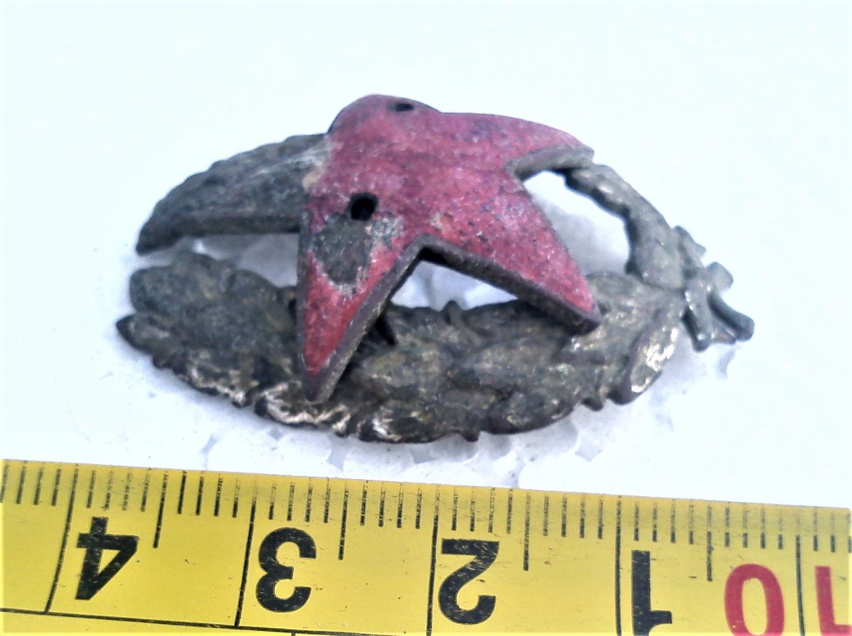 Ну определили Вы сами : зто действительно остаток знака красного командира . Разновидностей было несколько . А что значит " царский венок " ?