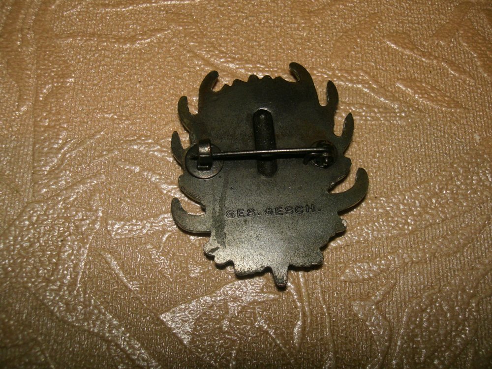 Прошу помощи в определении сего знака. Под накладным щитом дубовые листья, что за щит? на лицевой стороне клейм и надписей нет. Спасибо за ответы.