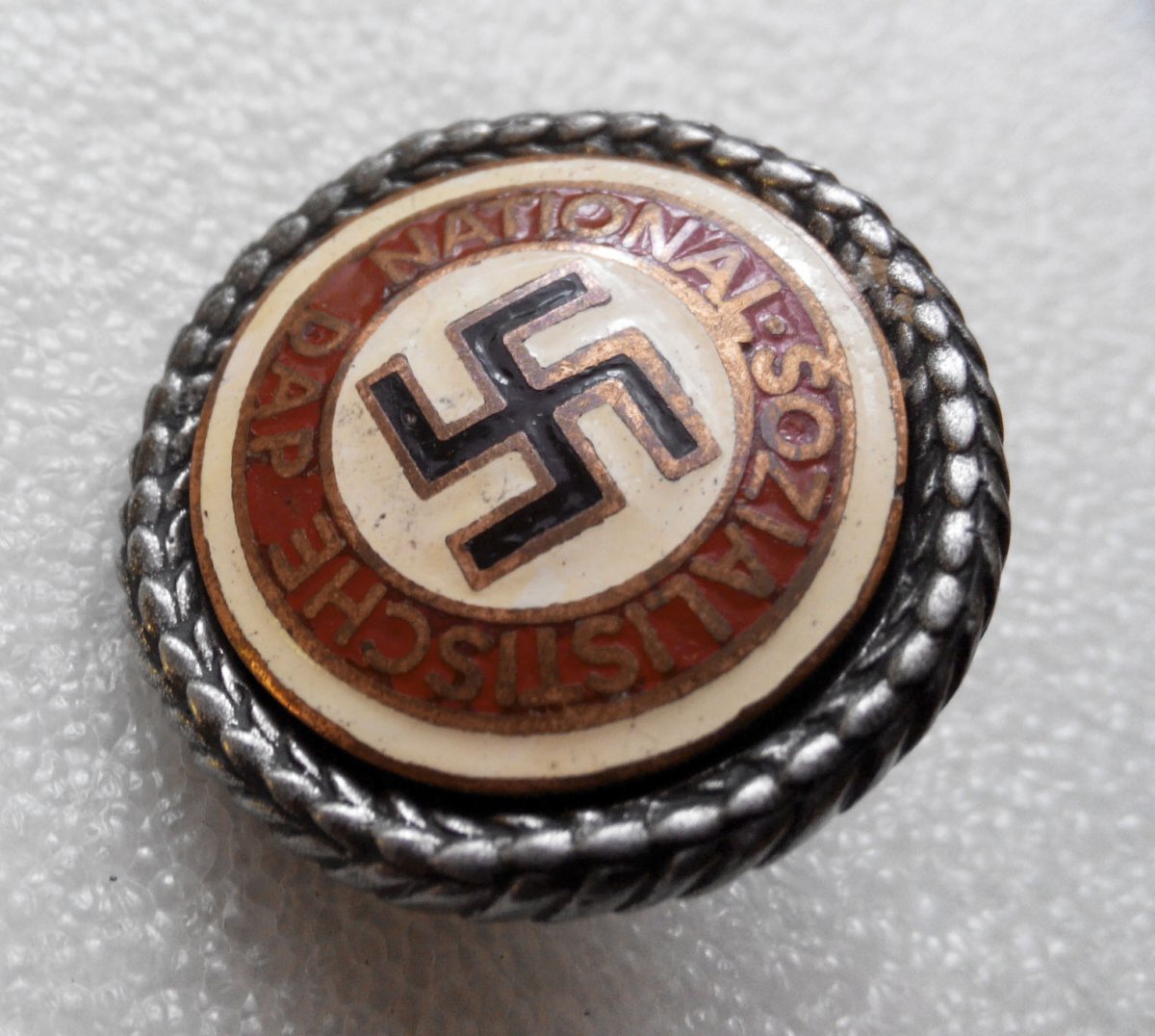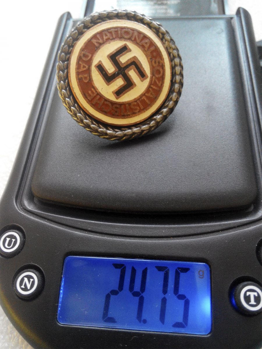 Доброго времени суток! Уважаемые! Прошу Вашей помощи в атрибуции данного знака NSDAP. Пришел случайно, вместе с крестом За военные заслуги 1939, фото прилагаю так же, и вместе с остальным, вообще не относящимся к теме, хламом... вес 24,75 гр. диаметр 35,6 мм. толщина венка 3,5 мм.