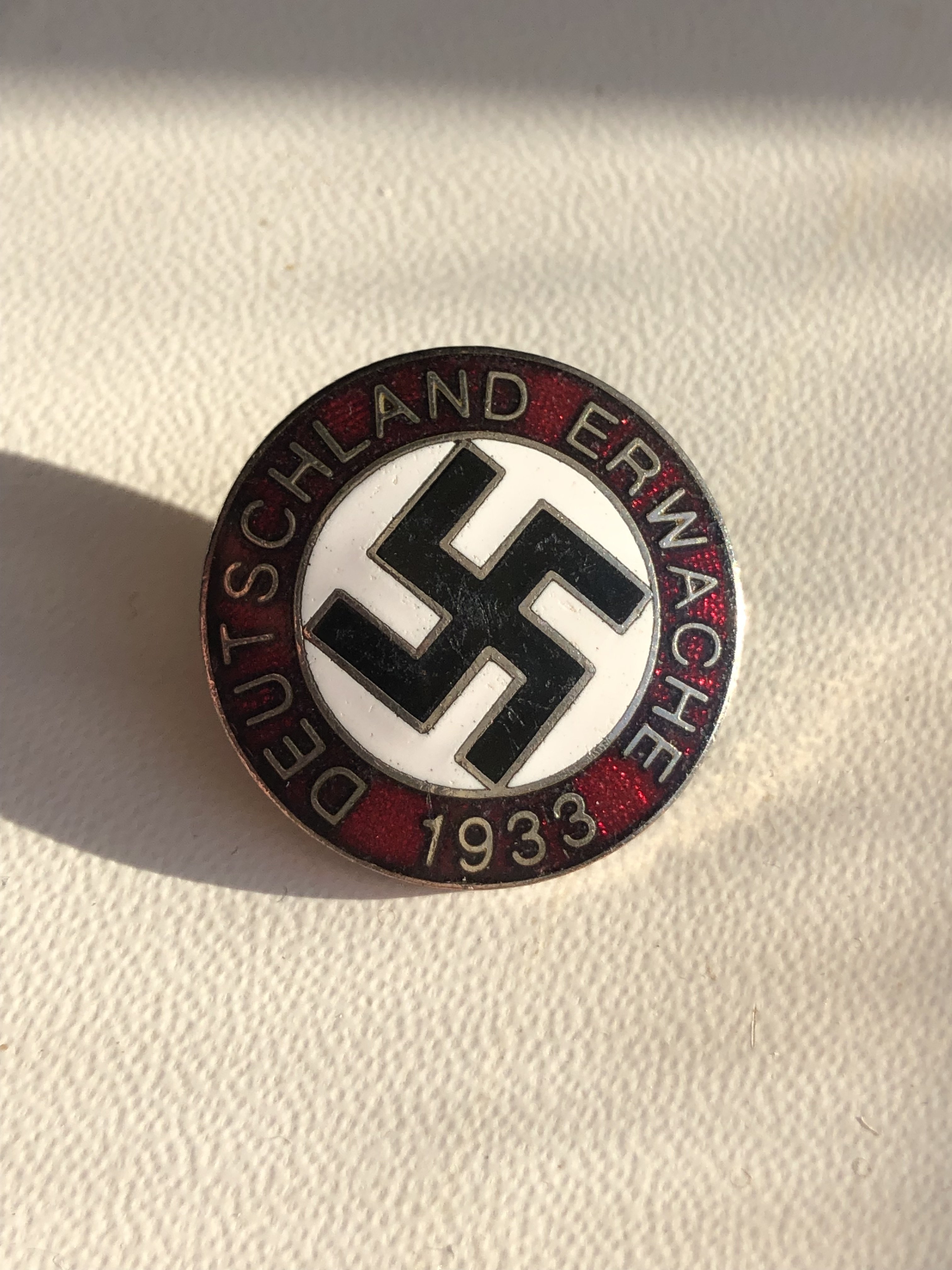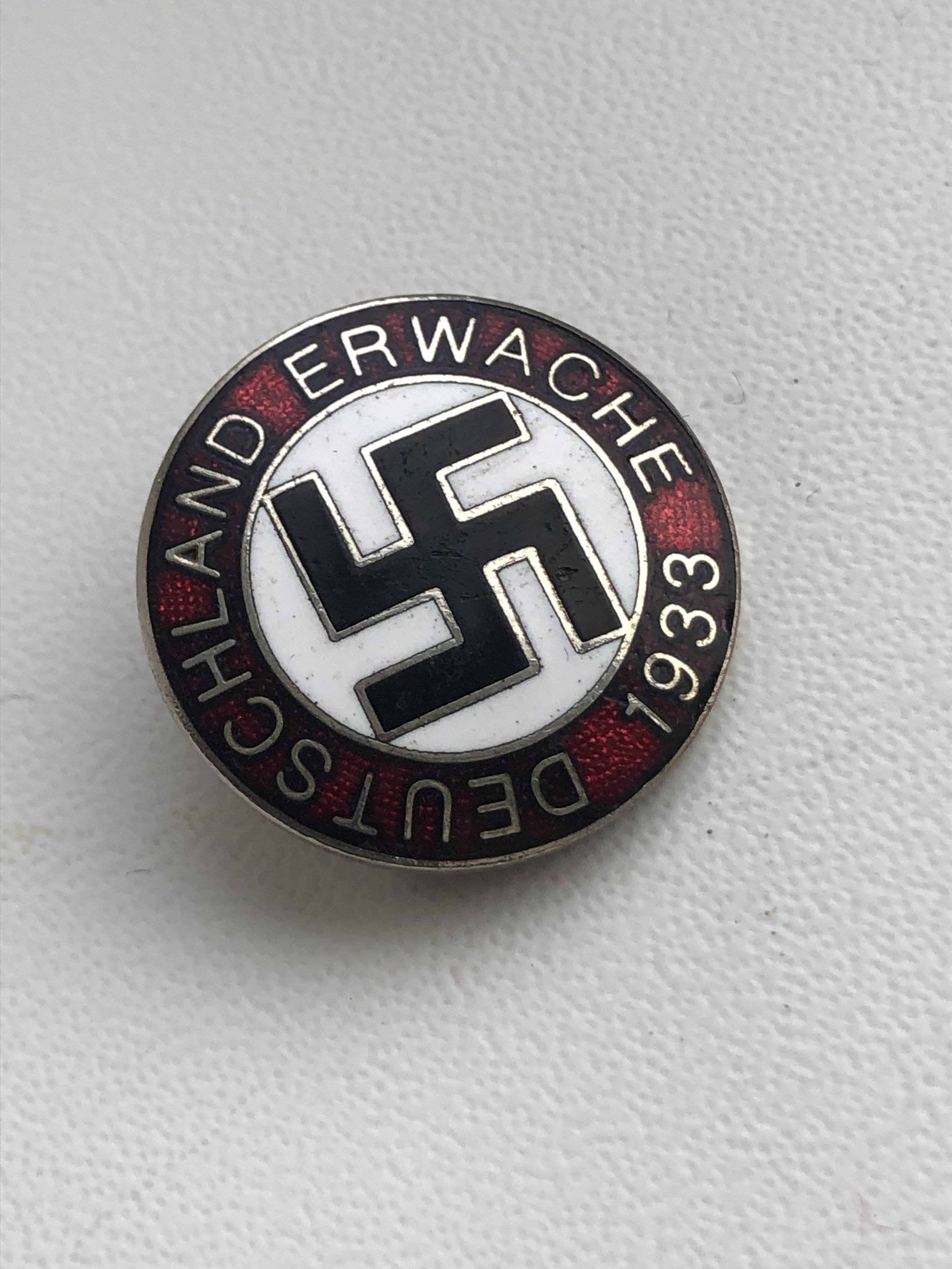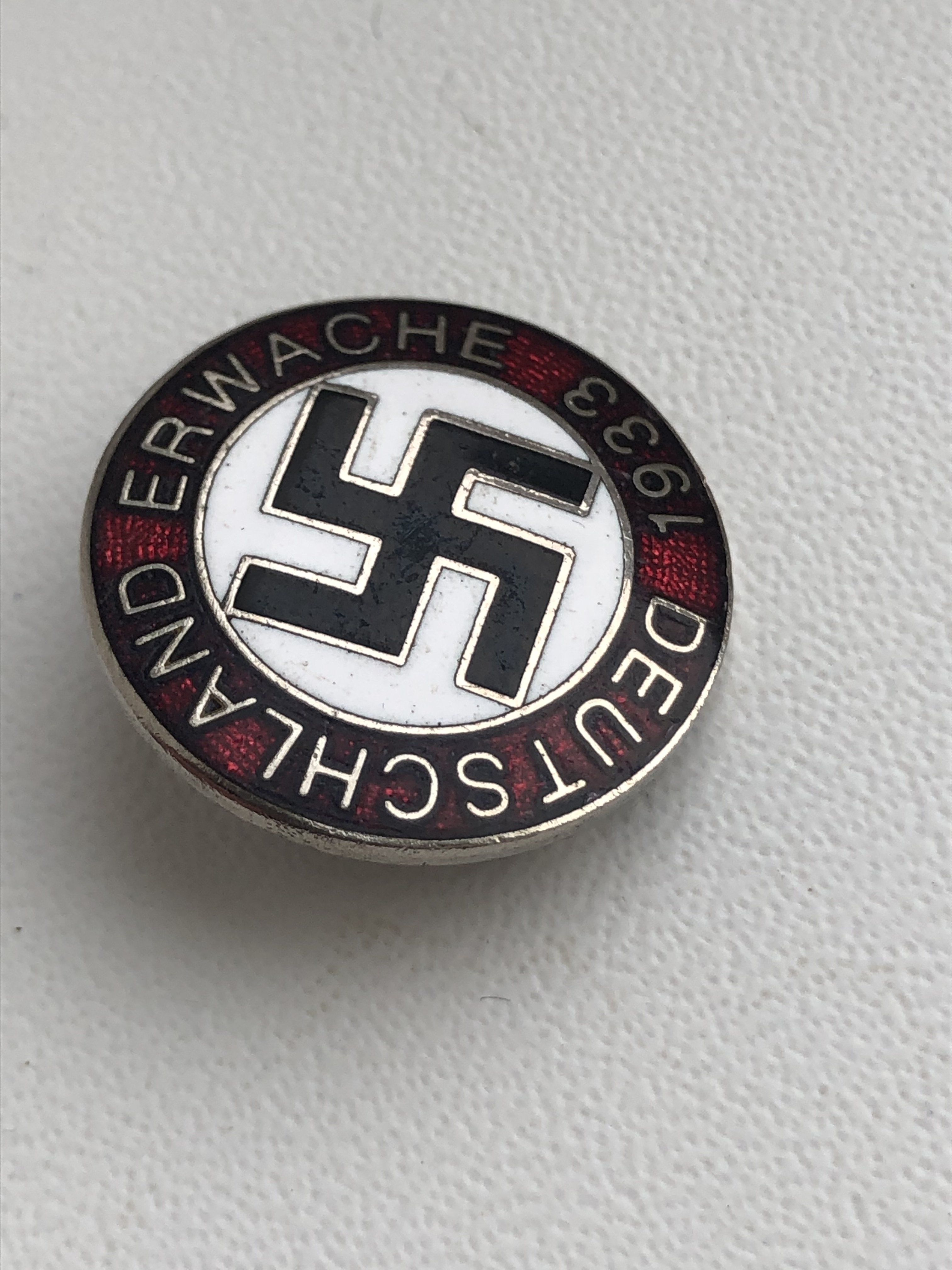 Вітаю,я маю такій самій!і мені так казали -Приветствую. 1) Erwache - не оригинал. Если быть точнее, это копия, которая называется копия «Мориги». Николас Мориги достаточно известный диллер из Великобритании, который в середине 70-наладил производство очень качественных копий наград Третьего Рейха. Его копии попали во много известных коллекций. Выпускал каталоги, типа Нимана. В общем, хорошо известный товарищ в узких кругах. Большую часть линейки, выпускаемых им копий, уже успели установить. Этот агитационный знак симпатии в частности, один из его продуктов. Кстати, многие коллекционеры покупают себе подобные «именитые» копии в коллекцию, они уже тоже стали раритетами. Вот, к примеру цена на такой знак https://www.bremer-sammlerparadies.de/p/deutschland-erwache-1933-fruehes-sympathieabzeichen-replika Реально знак сделан очень качественно. Прокололся он на том, что выборы были в 1933 году, а на знаке стоит rzm, который появился только в 1934-м. А так, все корректно 2) По членскому знаку проблем не вижу. Партийники производста Karl Wurster, наерноное, одни из самых встречаемых