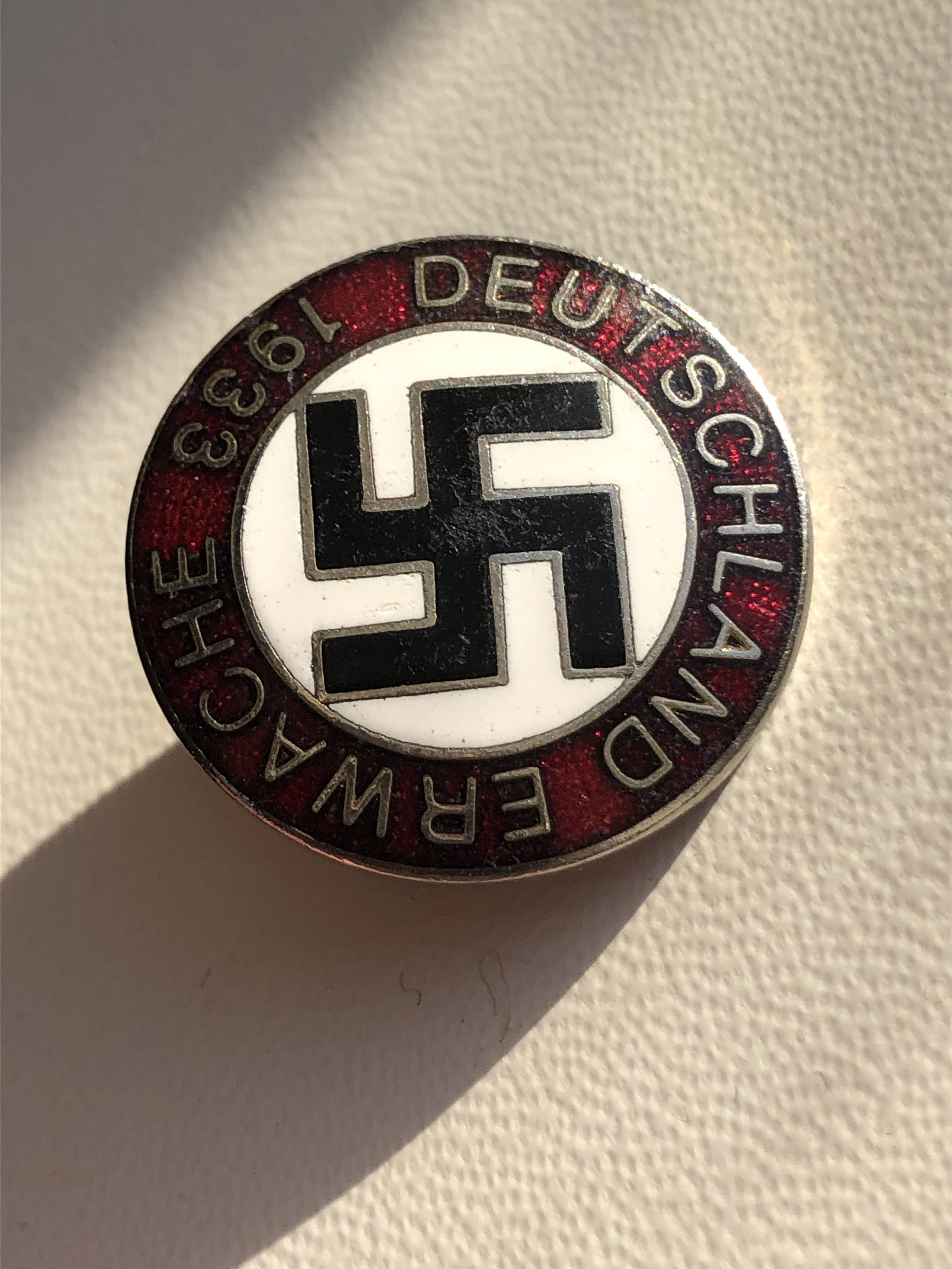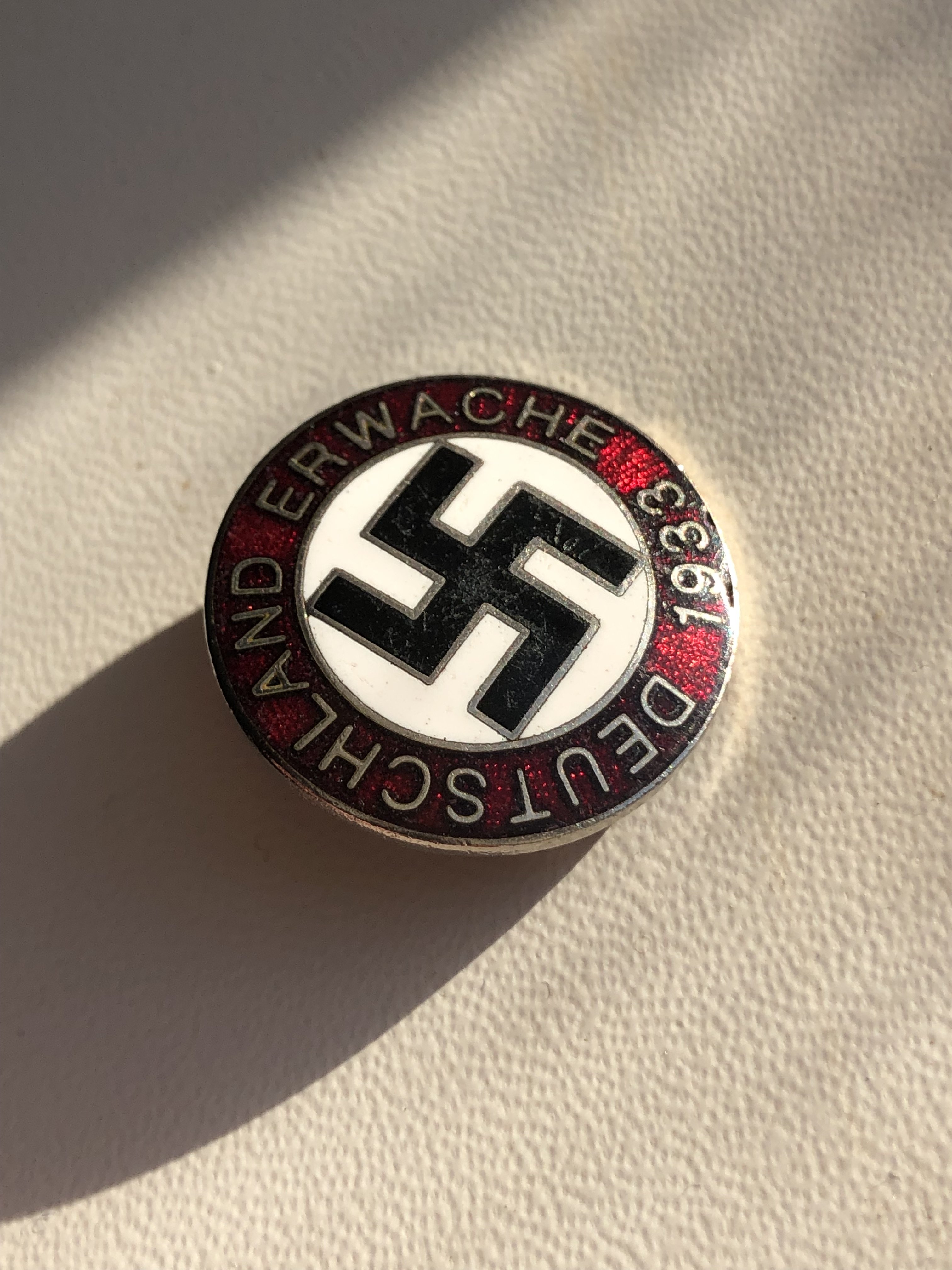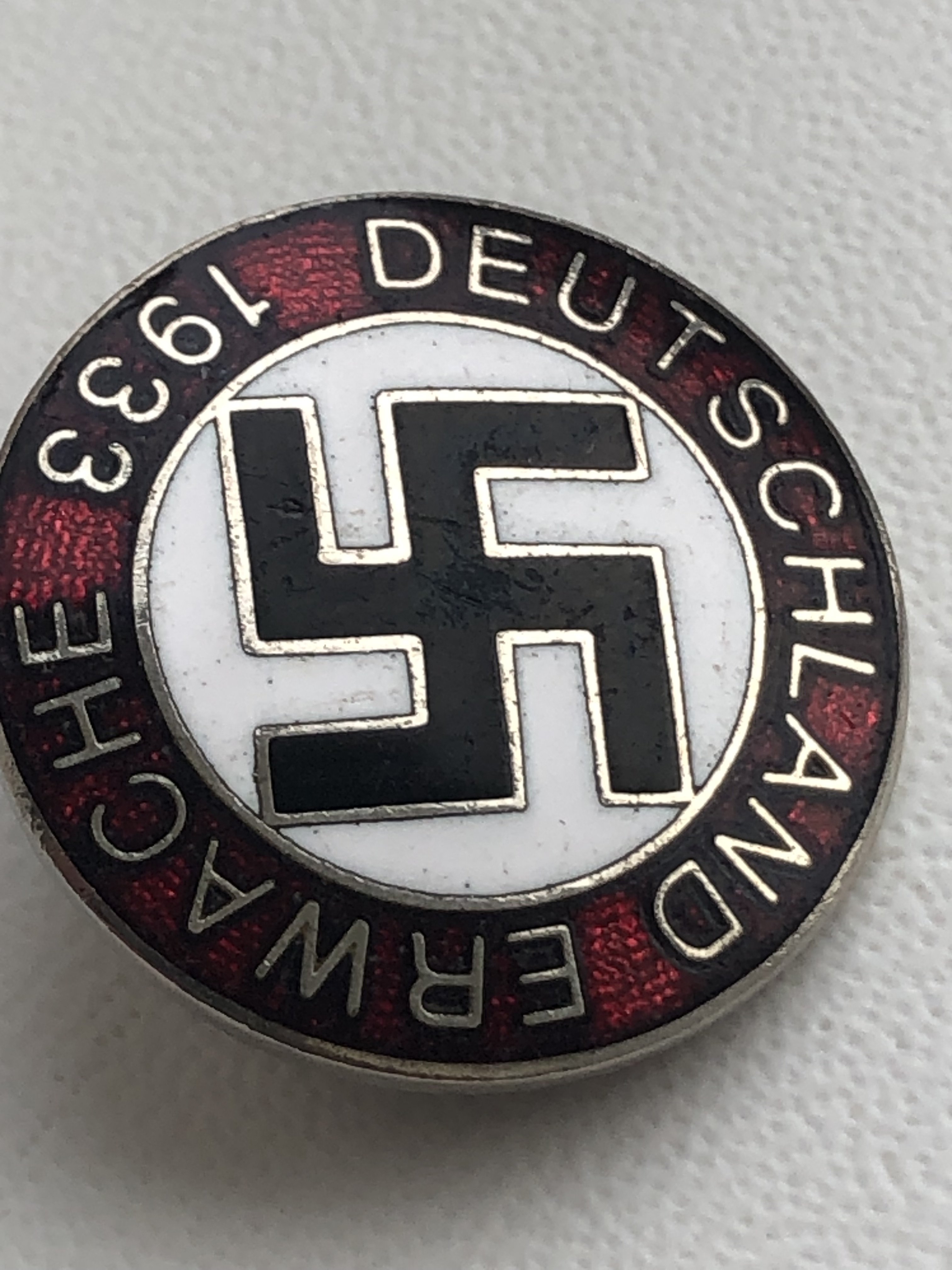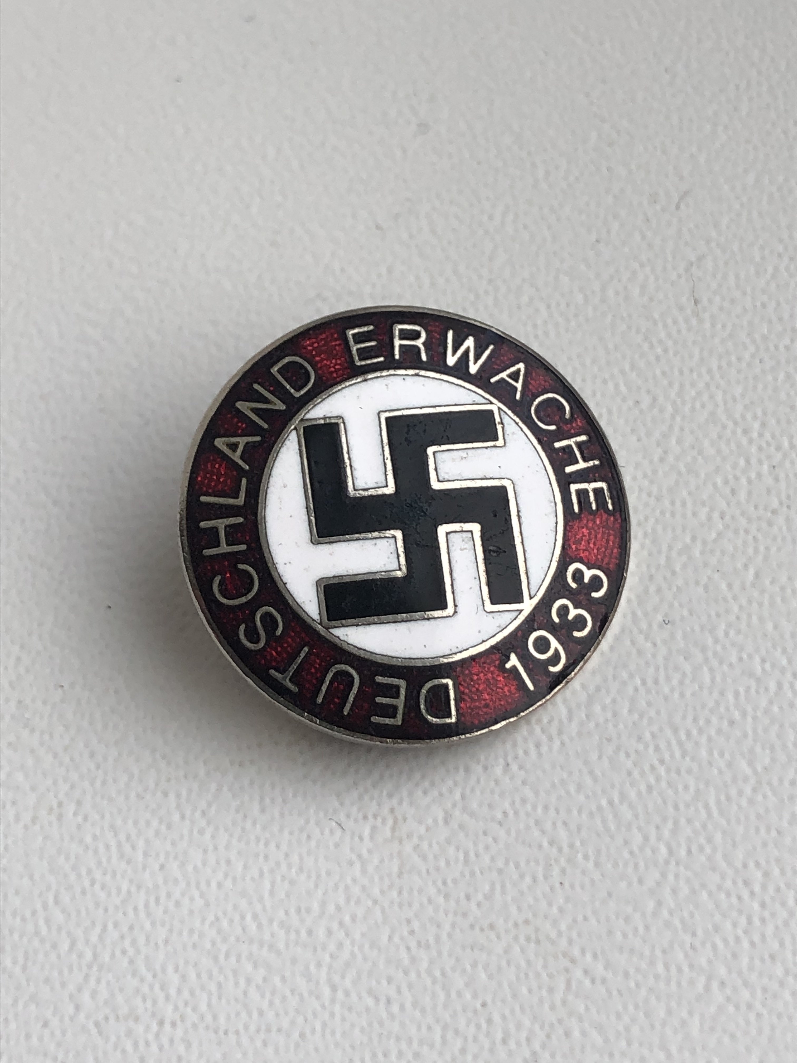 Вітаю,я маю такій самій!і мені так казали -Приветствую. 1) Erwache - не оригинал. Если быть точнее, это копия, которая называется копия «Мориги». Николас Мориги достаточно известный диллер из Великобритании, который в середине 70-наладил производство очень качественных копий наград Третьего Рейха. Его копии попали во много известных коллекций. Выпускал каталоги, типа Нимана. В общем, хорошо известный товарищ в узких кругах. Большую часть линейки, выпускаемых им копий, уже успели установить. Этот агитационный знак симпатии в частности, один из его продуктов. Кстати, многие коллекционеры покупают себе подобные «именитые» копии в коллекцию, они уже тоже стали раритетами. Вот, к примеру цена на такой знак https://www.bremer-sammlerparadies.de/p/deutschland-erwache-1933-fruehes-sympathieabzeichen-replika Реально знак сделан очень качественно. Прокололся он на том, что выборы были в 1933 году, а на знаке стоит rzm, который появился только в 1934-м. А так, все корректно 2) По членскому знаку проблем не вижу. Партийники производста Karl Wurster, наерноное, одни из самых встречаемых