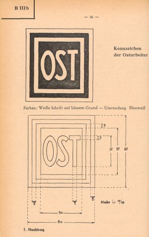 Подскажите, может здесь кто сможет изготовить на материи такой вот знак, которые носили угнанные в Германию рабочие. Очень нужно в экспозицию школьного музея, где уже имеются фото и письма "остарбайтеров. Или подскажите, к кому обратится. С ув.