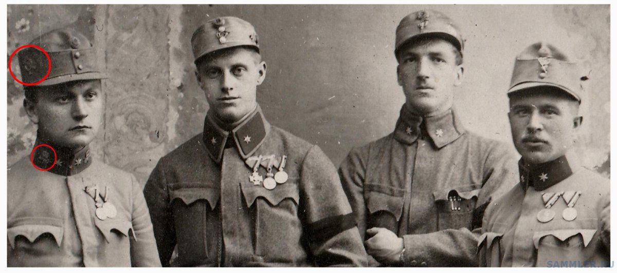 Комплект знаков пулеметных команд Австро-Венгрии: знак пулеметных команд на кепи и парные знаки (левый и правый) на петлицы общей армии (имперская корона над драконами). Хороший комплект.