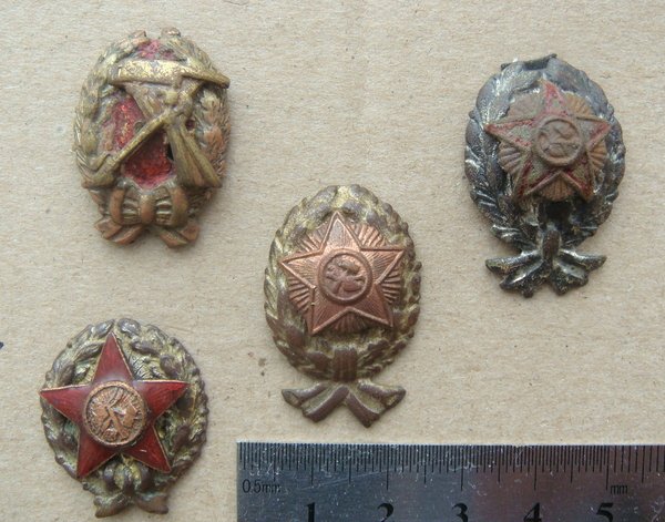 Доброго! "Знак краскома", якщо не рахувати закрутки, то комплектний, зірка із сяйвом. Посріблений був вінок. https://reibert.info/lots/znak-kraskoma-rkka.292665/ https://reibert.info/threads/kokarda-ili-petlica-ochen-malenkaja-zvezda-plug-i-molot.894778/ З повагою,