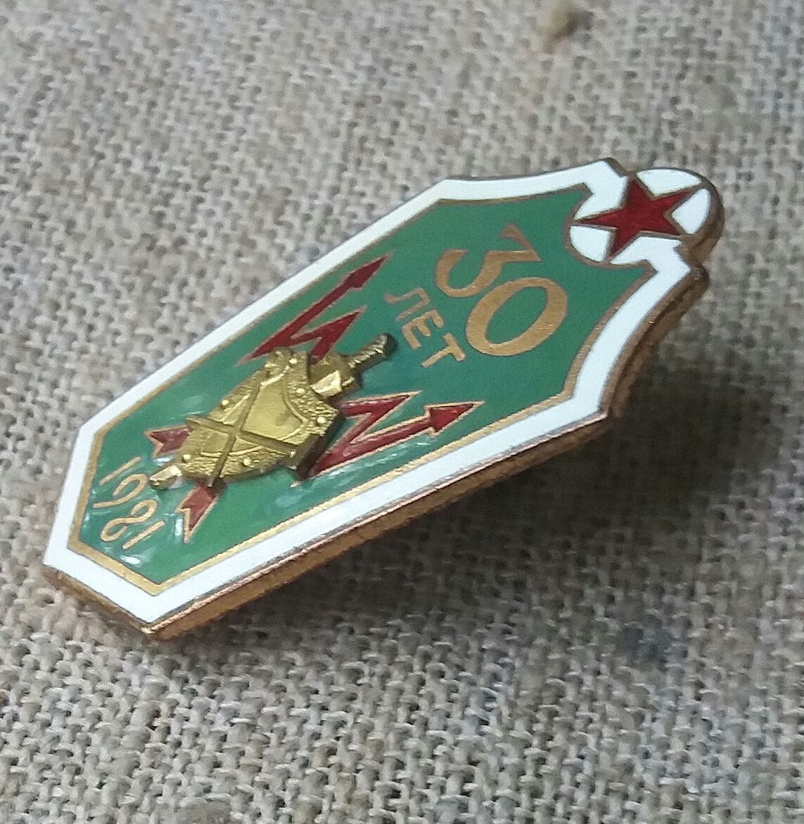 Доброго! Чисто как версия (доказательств нет) - может быть юбилейным знаком Главспецстроя СССР. Постановлением Совета Министров Советского Союза от 31 марта 1951 года №1032-518 в структуре Министерства внутренних дел СССР было образовано Главное управление специального строительства (Главспецстрой СССР). Главная задача созданного управления - строительство объектов, связанных с обеспечением обороноспособности и безопасности страны. https://www.simvolika.org/kollekz_specstroi.htm Главное управление специального строительства (Главспецстрой) входило в состав МВД СССР, с 8 мая 1956 г. – Министерства строительства СССР, с 25 июня 1956 г. – Министерства строительства РСФСР, с 23 января 1963 г. – Министерства монтажных и специальных строительных работ РСФСР, с 13 марта 1963 г. – Государственного производственного комитета по монтажным и специальным строительным работам СССР, со 2 октября 1965 г. – Министерства монтажных и специальных строительных работ СССР, с 5 сентября 1990 г. – при Совмине СССР, с 28 ноября 1991 г. – ведомство на правах Госкомитета РСФСР. В/ч 86673. Начальники: 1. САВЧЕНКО Сергей Романович (март – 4 ноября 1954 г.), генерал-лейтенант; 2. ПРИЩЕПА Петр Калинович (4 ноября 1954 – 21 апреля 1962 г.), генерал-майор; 3. ЗБРАИЛОВ Леонид Максимович (май 1962 – ноябрь 1963 г.), полковник; 4. КУЗНЕЦОВ Сергей Павлович (12 декабря 1963 – 1964 г.), полковник; ЯРЦЕВ Павел Дмитриевич (15 сентября 1967 – 5 марта 1973 г.), полковник; ГРАДОСЕЛЬСКИЙ Павел Васильевич (14 марта 1973 – 26 декабря 1985 г.), полковник, с 1977 г. – генерал-майор; http://shieldandsword.mozohin.ru/kgb5491/osobist/guss.htm P.S. Молнии на знаке похожи С уважением,