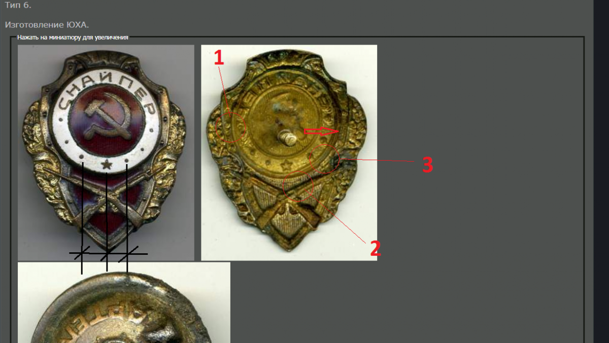 Прошу уважаемых специалистов высказать мнение по знаку. Вроде нормальный Снайпер изготовления ЮХА. Но сильно сбитый штамп реверса и нереально хорошее состояние аверса внушают подозрения. Спасибо заранее за ваши отзывы. Гайка не родная очевидно. Должна быть ЮХА. На просторах интернета нашел очень похожую Копию знака. Фото Копии: