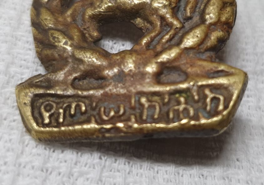 Визначити мову шрифту в такій якості виливка досить складно. До того ж це може бути і абревіатура, оскільки бачиться поділ символів.