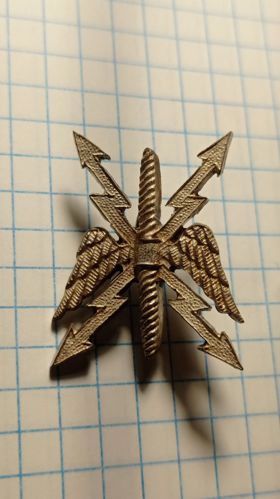 Доброго! Бачиться репліка погонного знака іскрових телеграфних частин РІА ( тобто частин радіозв'язку). Типу таких: Для порівняння з оригіналом З повагою,