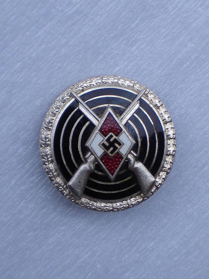 Знак снайпера молодёжной организации HJ. Выполнен из бунтметалла. Серебрение. Эмаль. В отличном коллекционном состоянии - 170€