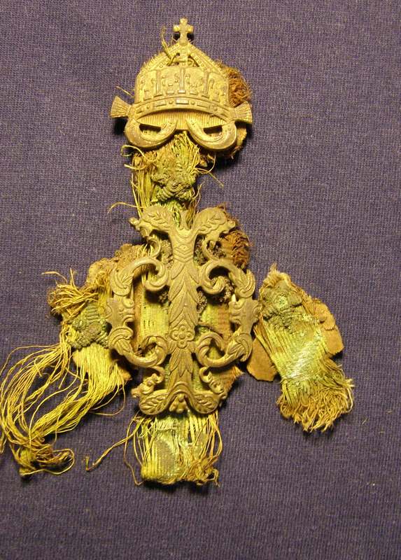 Крепление-усы,четыре на основном знаке,и две на короне.На первом фото их видно частично,потом выложу фото обратки