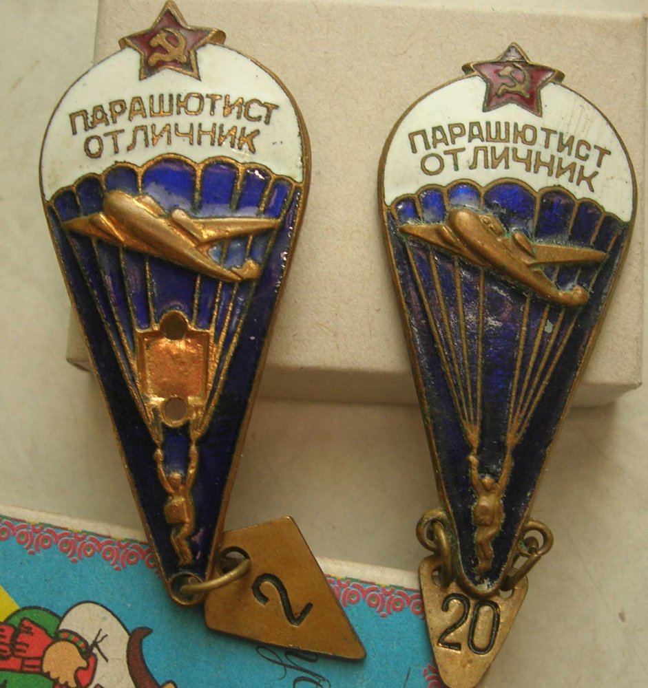 1 знак - после 1966 года. 2 знак до 1966 года / ушастик/. Самый интересный / были и с накладными самолетами /. 3 знак после 1966 года / тошнотик/, до 1966 дырки не было/ цифры могли быть накладные, белый металл. Для более точного определения нужно видеть реверс второго знака. http://falerist.org/znaki/znachok-parashyutista-sssr-kak-otklik-na-reformu-vdv.html