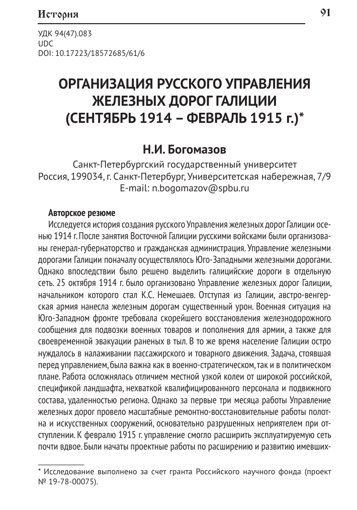 Первый, организационный этап деятельности управления железных дорог Галиции, как отмечал сам К.С. Немешаев, продолжался три месяца и закончился к началу февраля 1915 г. [38: 62]. Если в момент создания управления общая протяженность действующей сети насчитывала 1 037 км, то к 1 января 1915 г. управление эксплуатировало уже 1 728 км, а к 1 февраля – 1 915 км, т. е. за три месяца протяженность увеличилась практически вдвое [38: 43]. К концу первого этапа железные дороги Галиции насчитывали 159 открытых станций и остановочных пунктов, 2 товарных склада, 17 линейных складов и главные мастерские. Подвижной состав дорог исчислялся следующими цифрами: 310 паровозов, 685 пассажирских, 7 135 обычных товарных и 1 523 «специально приспособленных» товарных вагона [38: 43]. Паровозы и вагоны, кроме захваченных австрийских, передавались на железные дороги Галиции с Варшавско-Венской, Юго-Западных, Екатерининской и Николаевской железных дорог [38: 6–18]. Длина телеграфных проводов насчитывала 10 тыс. верст, телефонных – 2 250. На дороге служили 4 104 штатных и временных служащих, и был нанят 4 231 поденный рабочий.:)