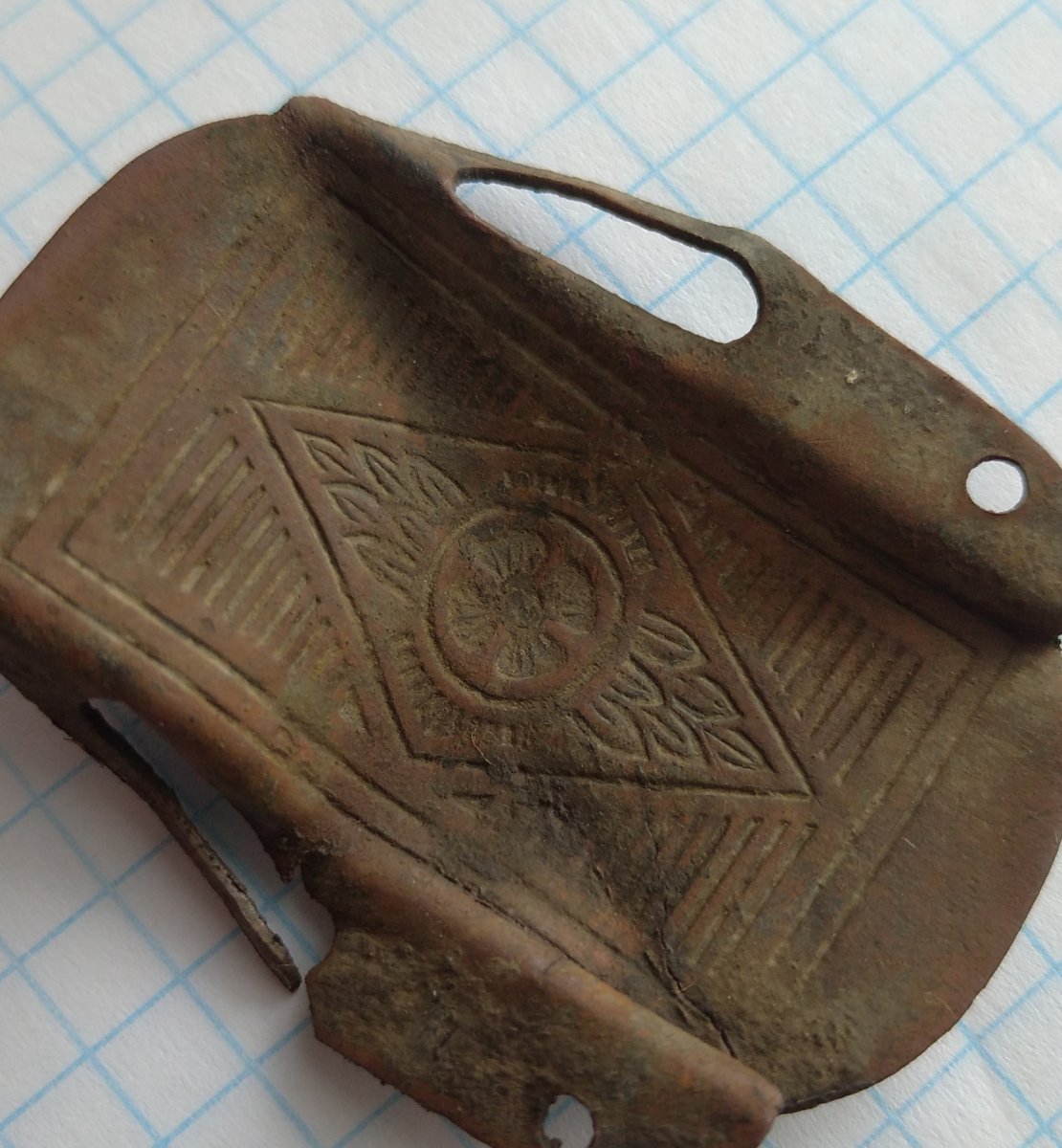 Пряжка с ремня,самозатягивающаяся (продольные разрезы).Кстати,яремно тоже пионерские входили в комплект формы,как галстук и пилотка)