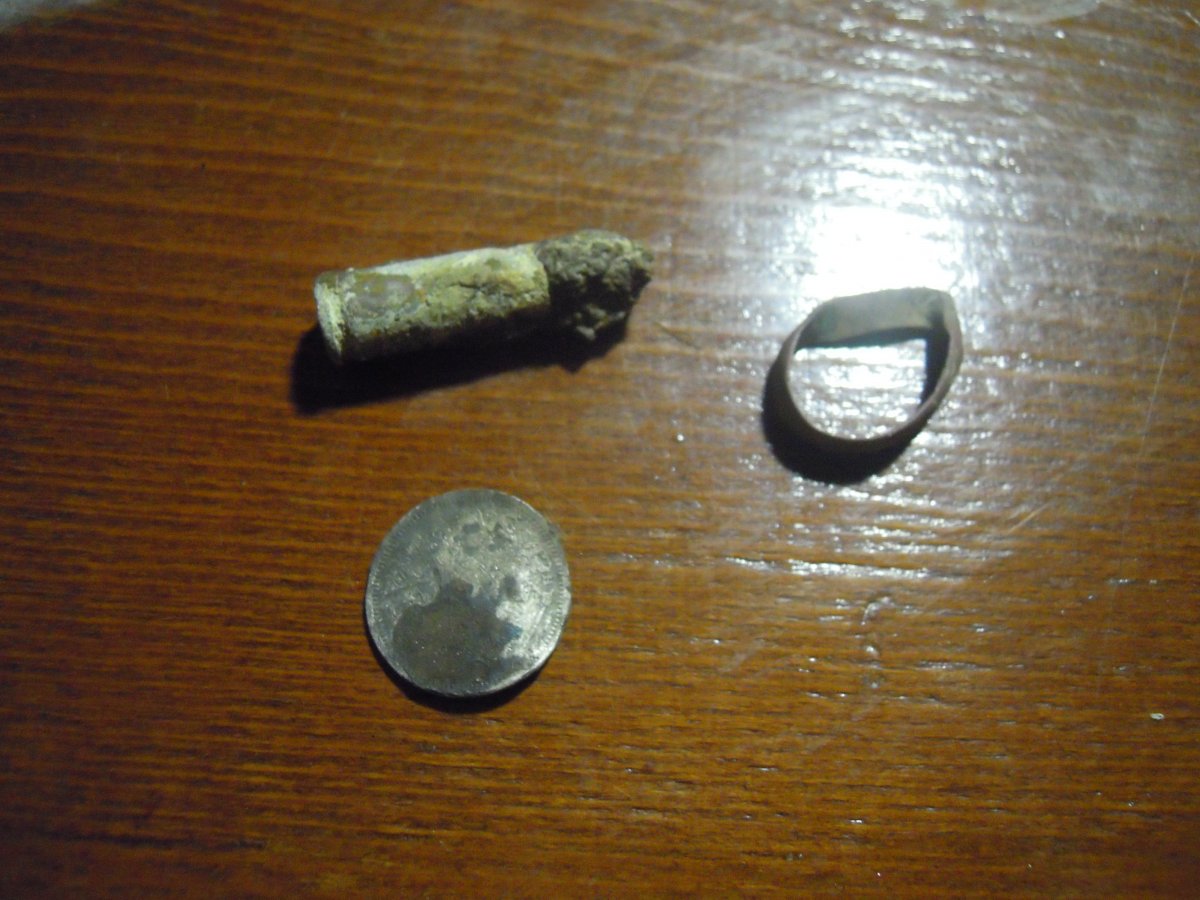 Шторм потихеньку вщюхав, але ще колихало, я всеж вирішив перевірити видимість. Вона виявилась слабою, бо навіть на дні було видно, як хвилі рухають пісок та глину.І першою я знайшов щойно вимиту між каміннями монету в 20 коп 1908 року! ЧЕРГОВЕ СРІБЛО!!! Ще з-півгодинки попірнавши знайшов гудзика дві гільзи та пряжку. Гільза від Манліхера 1915 року, стане до музейної експозиції по національно-визвольним змаганням 1917-1921